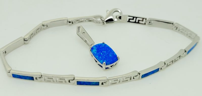 STERLING SILVER CREATED OPAL BRACELET AND PENDANT