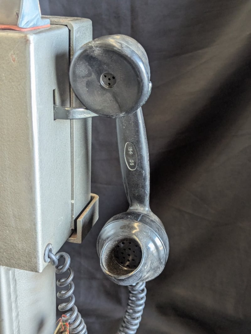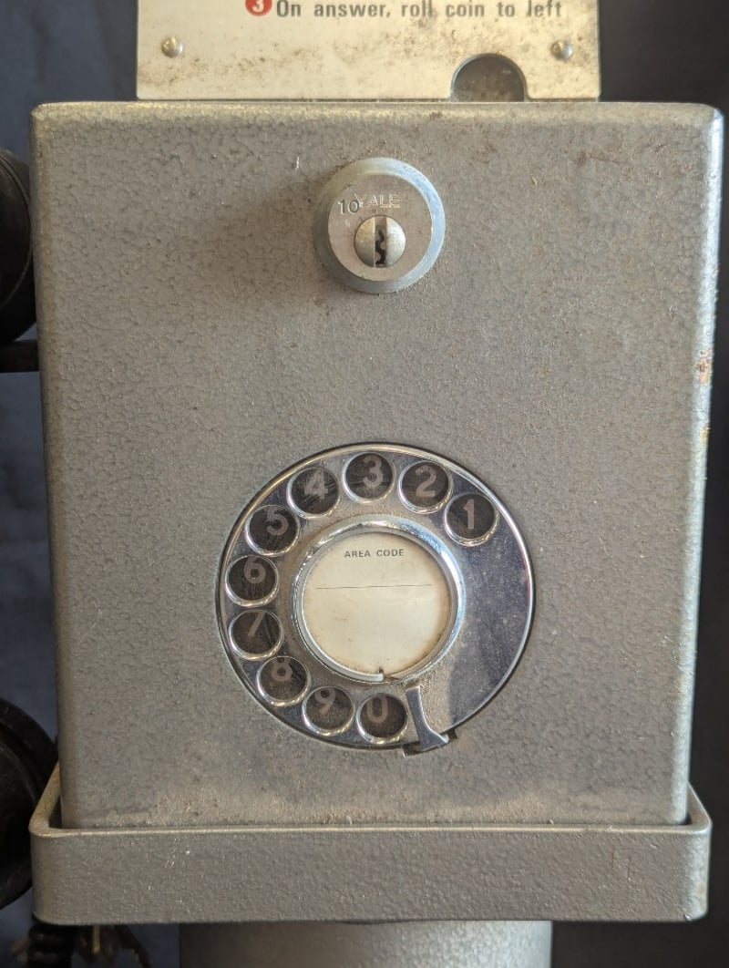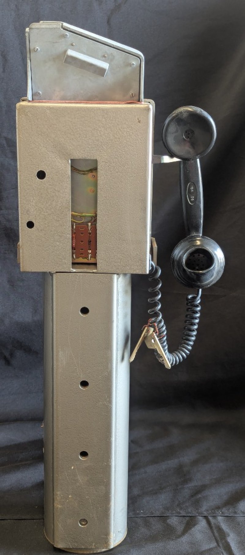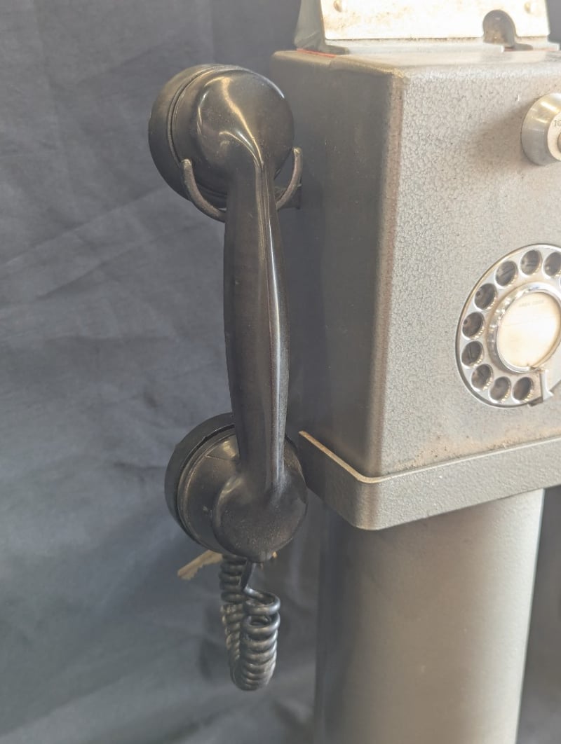 PILLAR STYLE PAYPHONE Metal Construction, Rotary Dial, Wired Handset, Handset Mount On Side, Includes Set Of Keys Item Size: 67cm H x 22cm W x 14cm D Condition: Very Good