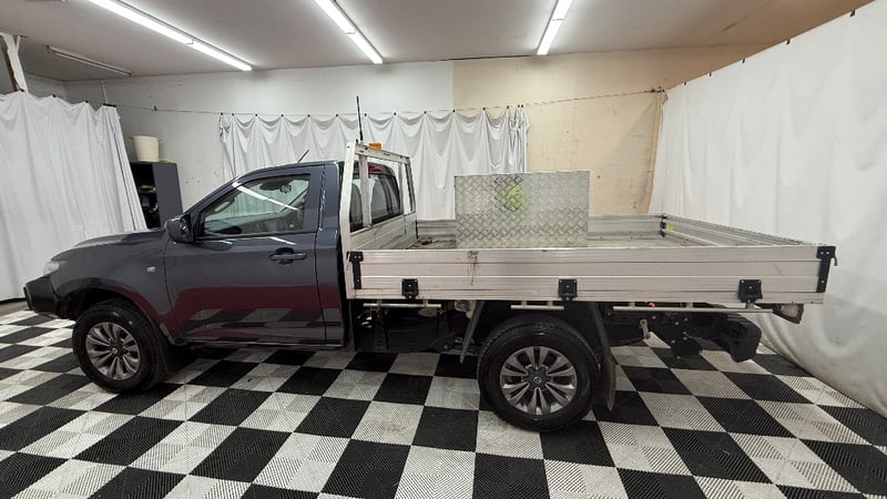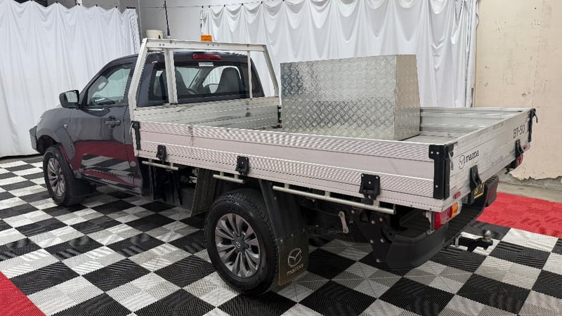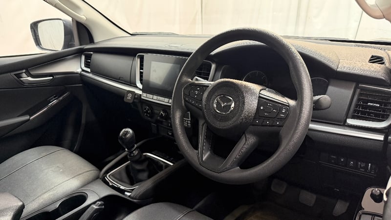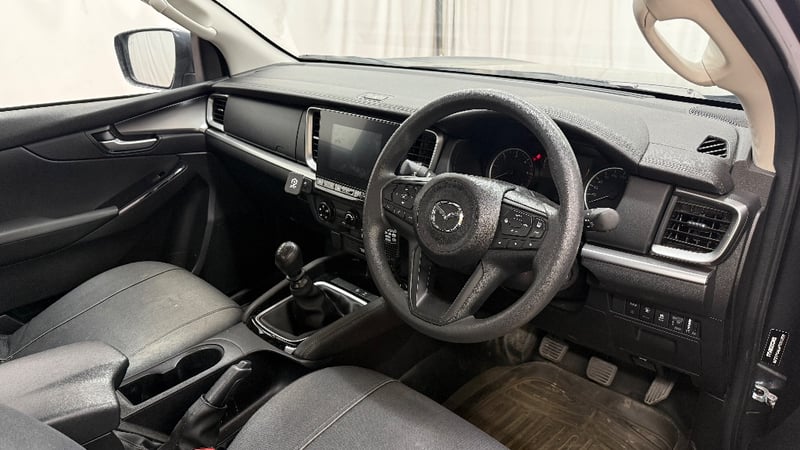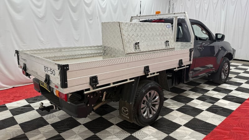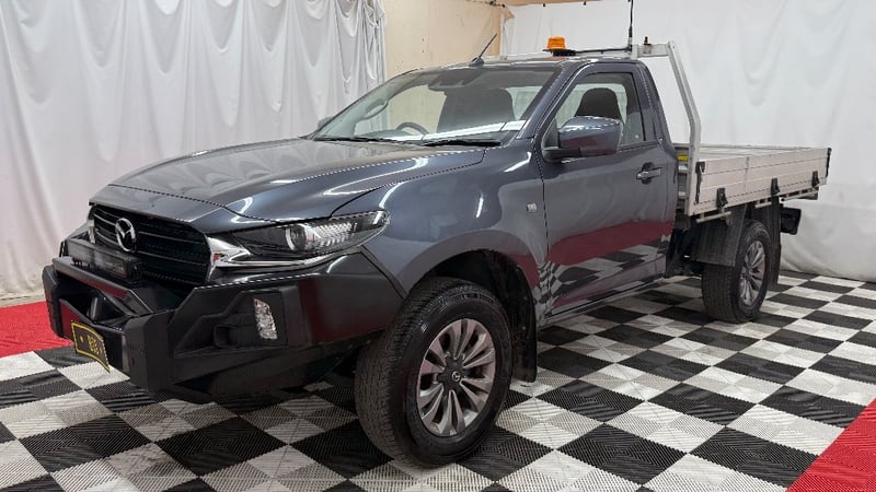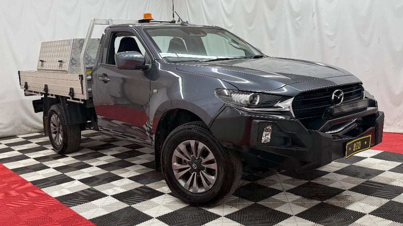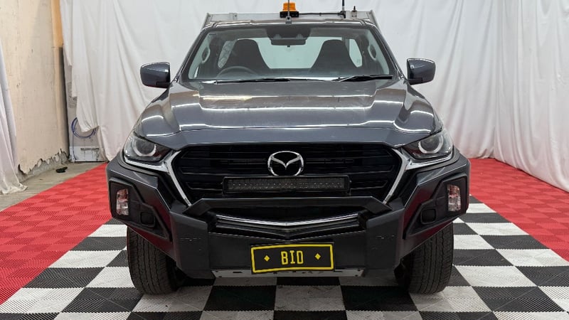 2023 Mazda BT-50 TF XTYear: 2023Make: MazdaModel: BT-50Series: TFBadge: XT Body: Single Cab ChassisDrive Type: 4x4Odometer: Indicating 23,240 KilometersEngine: 3.0 I4 Turbo DieselTransmission: ManualColour: GreySeats: 2Description/extras: Air Conditioning, Power windows, SRS, Sat Nav, Digital dash, Power seats, Cruise control, Leather interior, AUX / USB. Tool box, BullBar, Scratches from where Decals where originally. VIN: MP2TFS40JPT311258ENG No: 4JJ3EGY901 AS PER PPSR(Key # A15Lloyds stock #238038+1