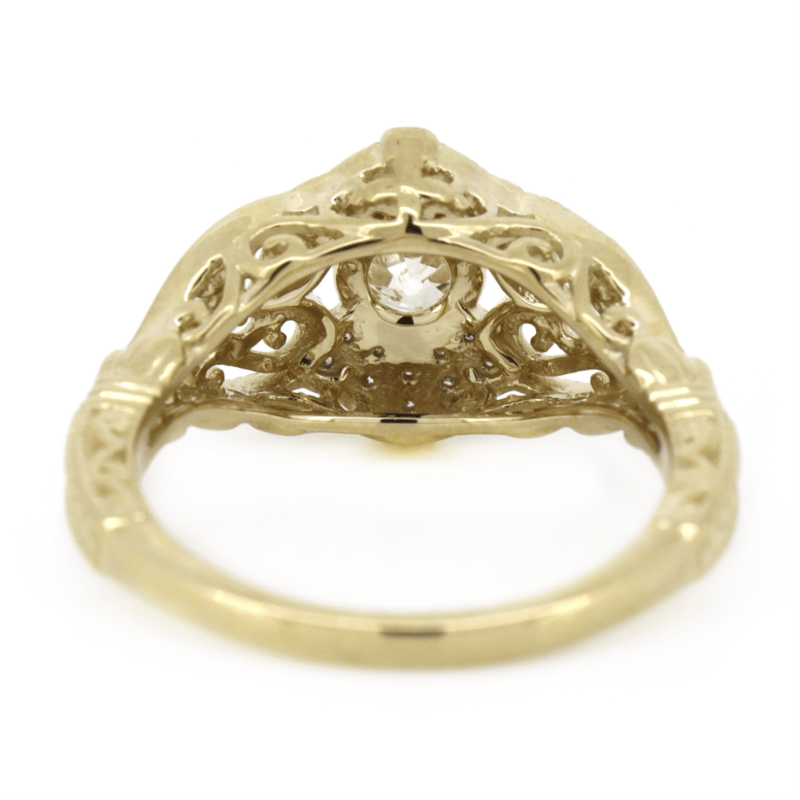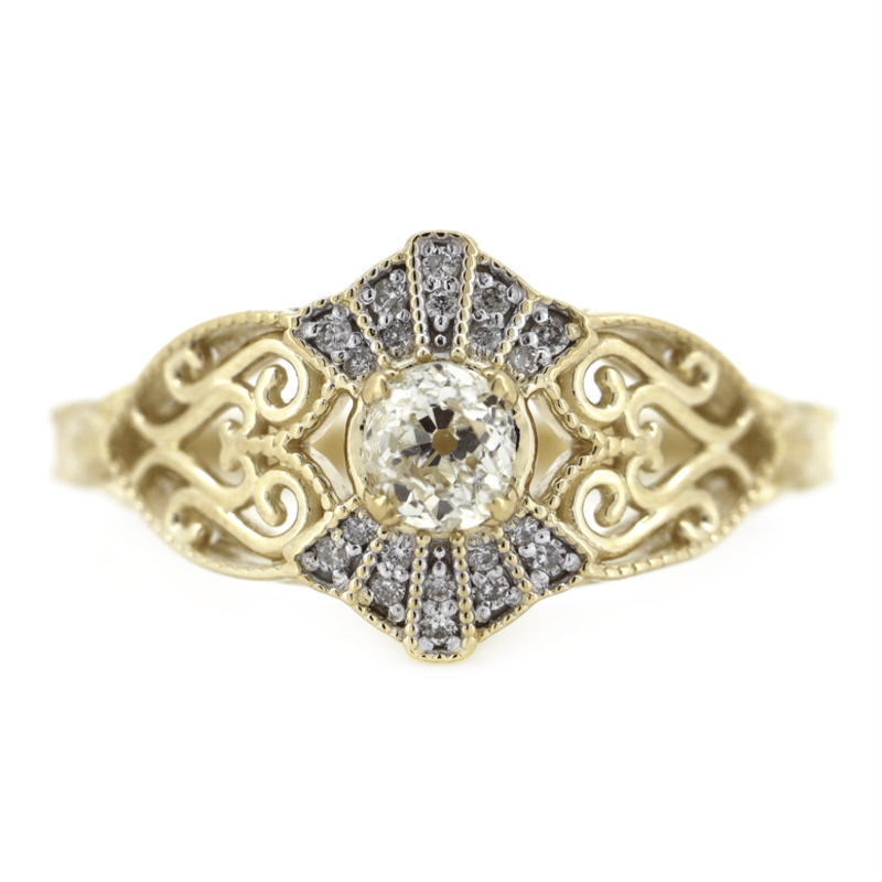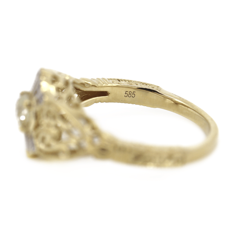 14K YELLOW GOLD AND DIAMOND, ART DECO INSPIRED RING. The Centre Features, One Old Mine Cut, Diamond (0.33Ct, H-I Colour, Si2-P1 Clarity), Claw Set. Embellishing The Design Are, 20 Round Brilliant Cut, Diamonds (0.08Ct Tdw, H-I Colour, Si2-P1 Clarity), Micro-Bead Set With Millegrain Accents. Ring Size N 1/2. Valuations Provided by an Independent Third-Party Professional Not Directly Associated With Lloyds Auctions at AUD $$8,000.00This valuation has been conducted by an independent third-party professional. The valuation amount is an assessment by the issuing valuer and does not reflect the auction value of the item. Any inquiries regarding the valuation should be directed to the issuing valuer (refer to contact details on the certificate), as Lloyds Auctions has no affiliation or influence over the valuation, the valuer, or the stated amount. Condition: Good - Refer Images 0645845+1538