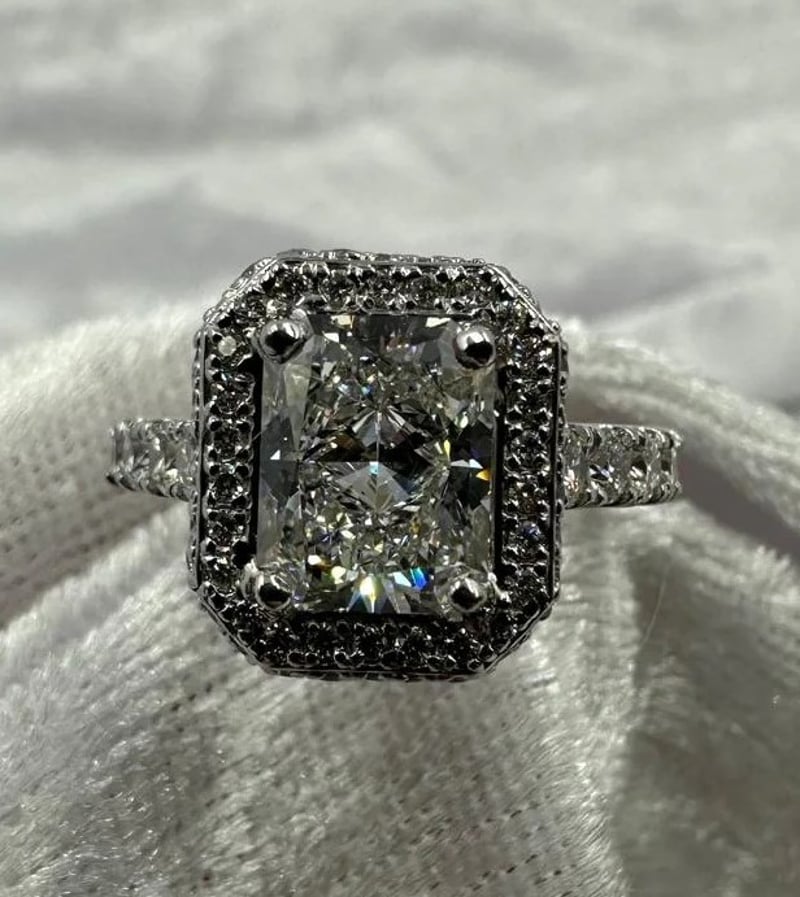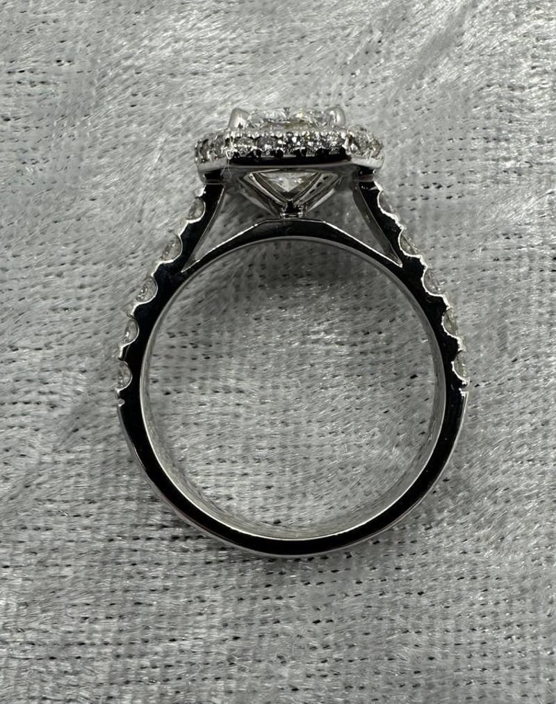 18K WHITE GOLD RING WITH RADIANT CUT LAB GROWN DIAMOND.Centre Stone: Igi Certified Radiant Cut Lab Grown Diamond Shape: Radiant Cut Specs: 2.01 Ct D/Vvs2, Ex Polish, Ex Symmetry, No Fluorescence 100% Eye Clean And Non Cloudy Setting: 18K White Gold Ring 56 X 0.005 Ct Round Natural Mined Diamonds On The Halo 10 X 0.07 Ct Round Natural Mined Diamonds On The Band Diamond Quality: F/Si Minimum Total Carat Weight On Band: 0.98 Carats Approx Finger Size: O1/2Igi Cert# Lg695522312Condition: Good - Refer To ImagesCROSSDOCK162955+37