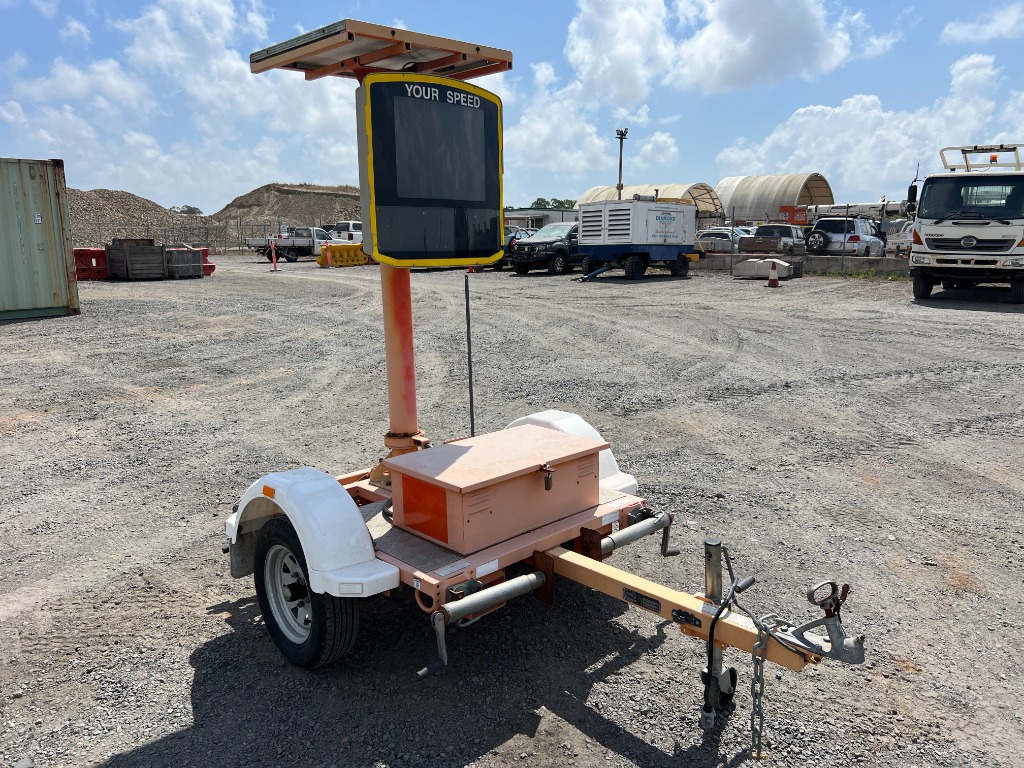 2019 Mobile Evolis Metric Speed Display Trailer A radar or Doppler sensor to detect vehicle speed, LED display (numeric + possible messages / graphics) to show the driver their current speed, Data logging / traffic count capabilities in many models. Power supply via solar panels + battery (and sometimes mains backup) A trailer frame with a mast or lifting mechanism to elevate the display. Due For Calibration Year: 2019 Make: Artcroft Model: YT-RST01 Configuration: Mounted Radar Suspension: Leaf Chassis No.: 6U9VSS00000147764 ATM: 350KG Tare: 350KG Location: #MACKAY Plant#94420 Contact Kyle Haywood | Ph 0487 020 888 | [email protected] Holding Yard 3/263 Connors Road, Paget , MACKAY QLD, Australia