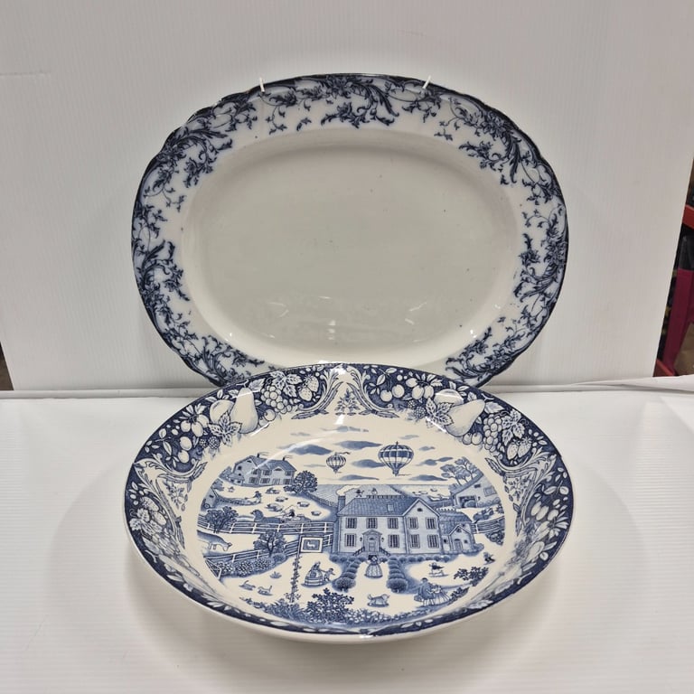 2 VERY LARGE VINTAGE SERVING PLATTERS Item Size: Height: 9cm, Width: 48cm, Depth: 39cm Condition: Good - Refer To Images LOCATED RACK 9C 587687+7
