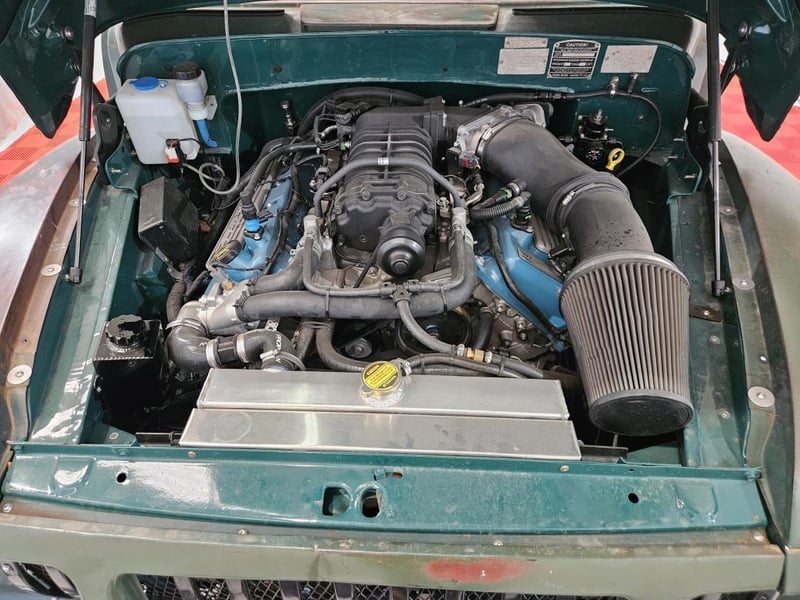 A true one-of-a-kind build, this 1971 Bedford Truck has been transformed into a head-turning restomod, combining classic British truck styling with American muscle car performance. Retaining its patina-finished green bodywork for that rugged vintage look, the truck hides a monstrous surprise under the bonnet: a 5.4-litre 4-valve SVT Shelby supercharged V8, delivering modern-day supercar power in a classic shell.