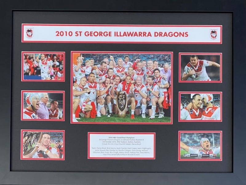 ST GEORGE ILLAWARRA DRAGONS, 2010 NRL PREMIERSFramed Using Double Mats, Glass And A Black Frame Condition: Good - Refer To Images488263+31