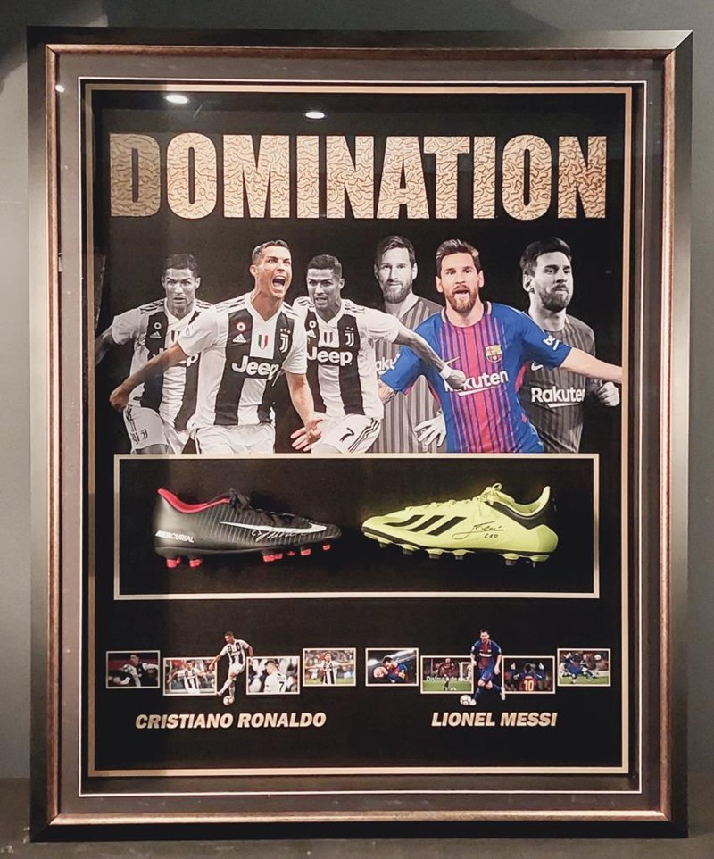 CRISTIANO RONALDO AND LIONEL MESSI "DOMINATION" HANDSIGNED FOOTBALL BOOTS IN FRAMED DISPLAYComes With Certificate Of Authenticity From United Pro Authentication ServicesSize: 106cm x 86cm x 15cmCondition: Excellent - Refer To Images155566+62