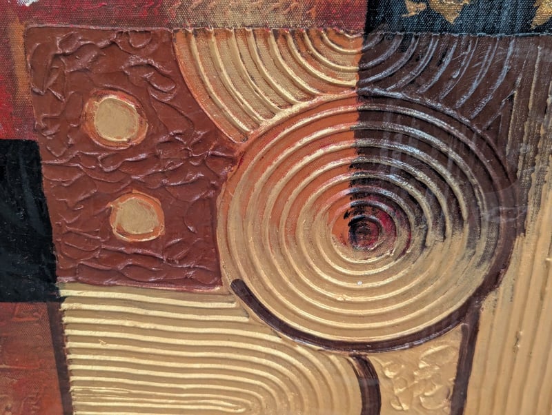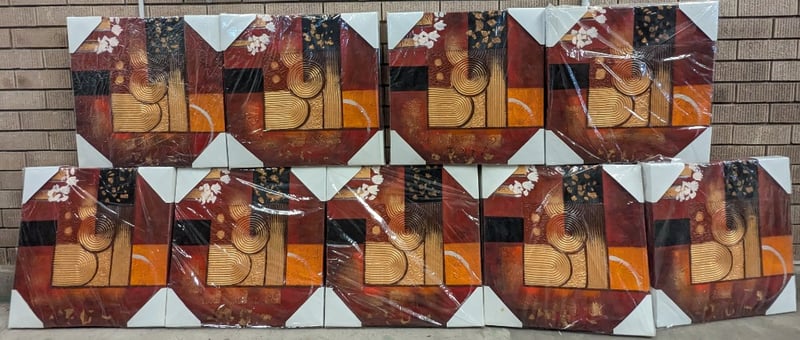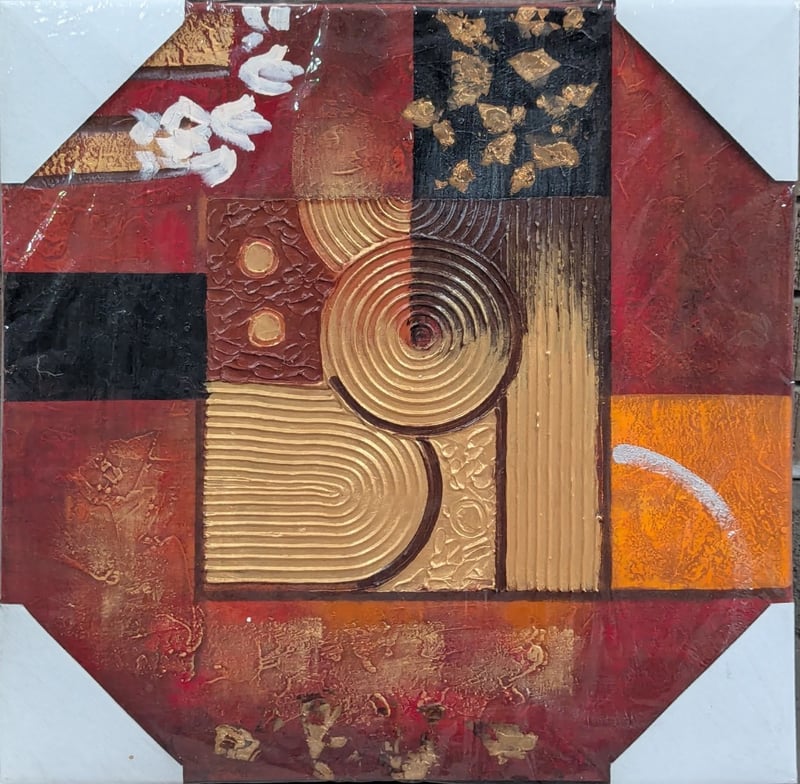 NINE MIXED MEDIA ARTWORKS ON CANVASItem Size: Height: 60cm, Width: 60cmArtworks Feature Textured Design With ShapesArtworks Stretched And Ready To HangCondition: Good - Refer To Images584844+26