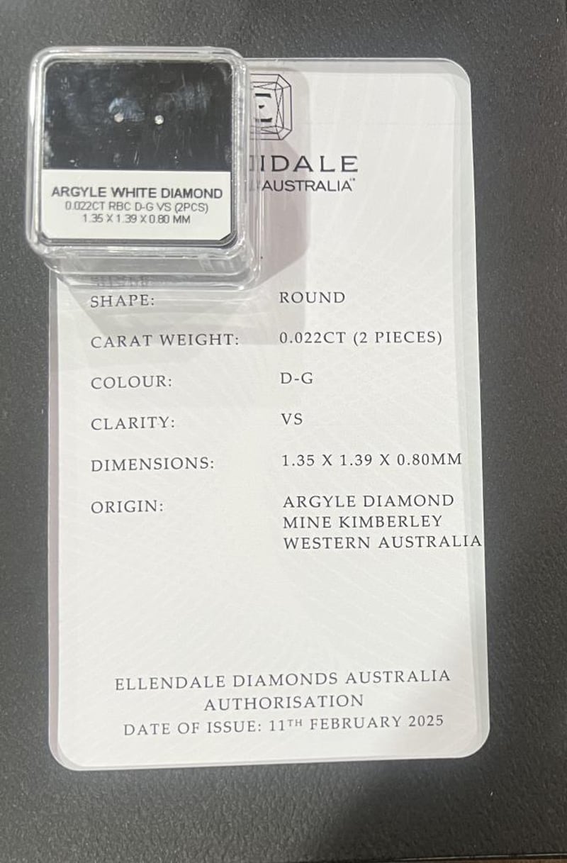 0.022 CARAT ARGYLE WHITE 2 DIAMOND CERTIFIED IN A BOX WITH CERTIFICATE OF AUTHENTICITY Condition: Used - Refer Images 0+12