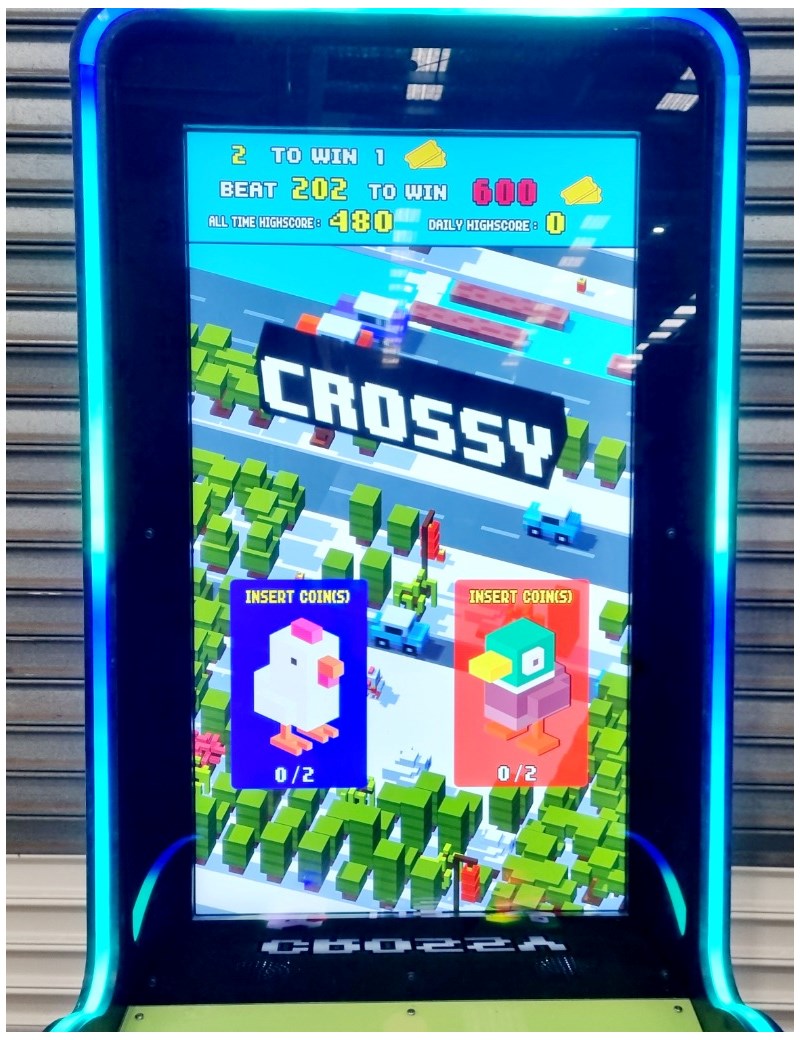 Amusement Arcade Machine CROSSY, Model: RYRK09, Serial: 20221005, Excellent working game 2.5 yrs old and a consistent earner. ROI on these games occurs quickly. Don’t pay $15,000+ for this game elsewhere. QR Code Manual available on request, Does Not Include Key.