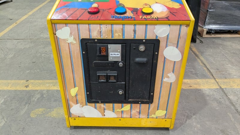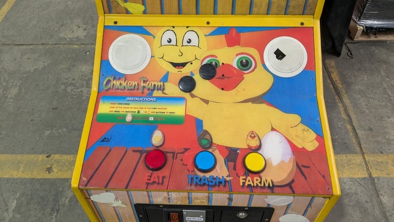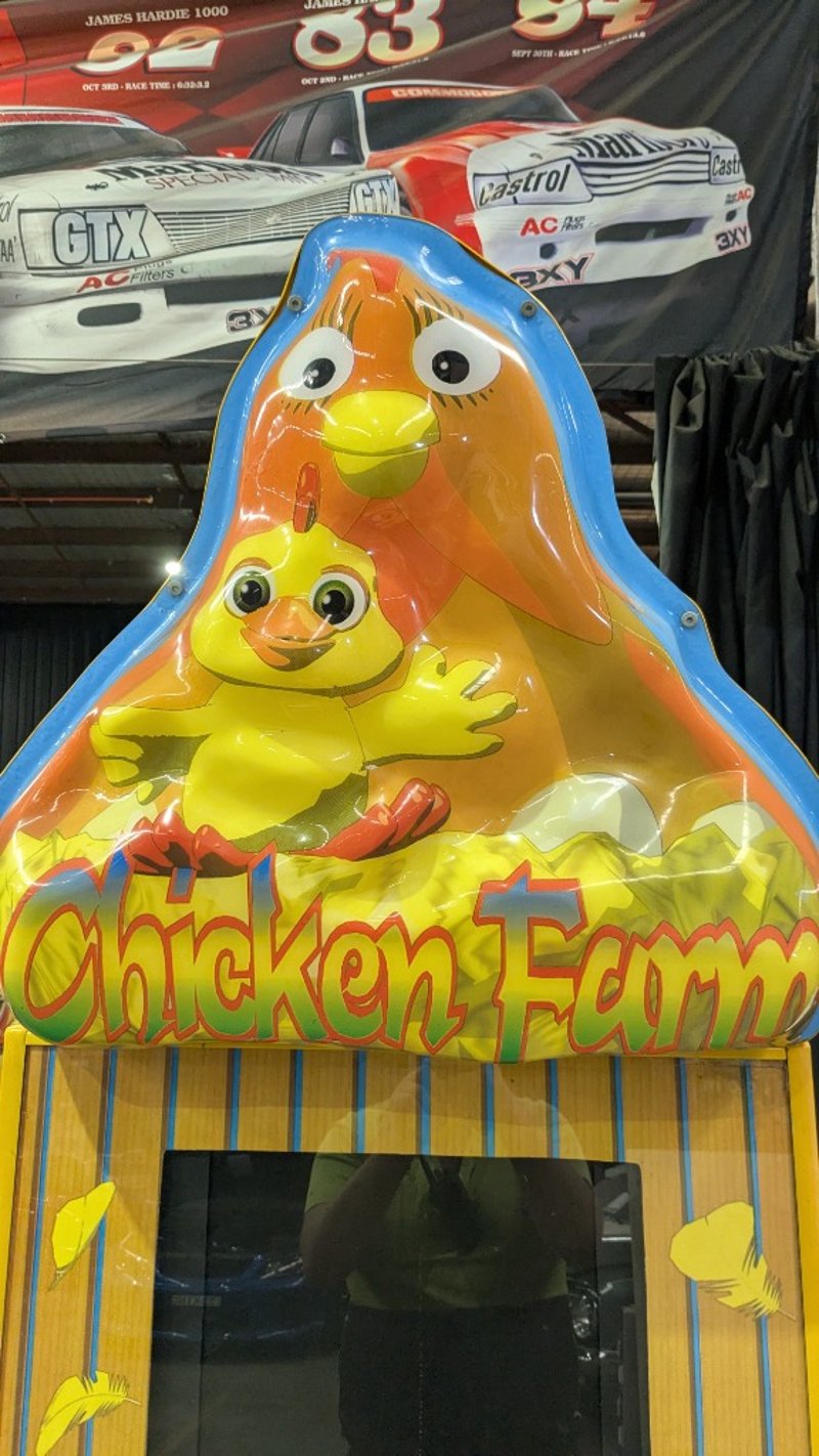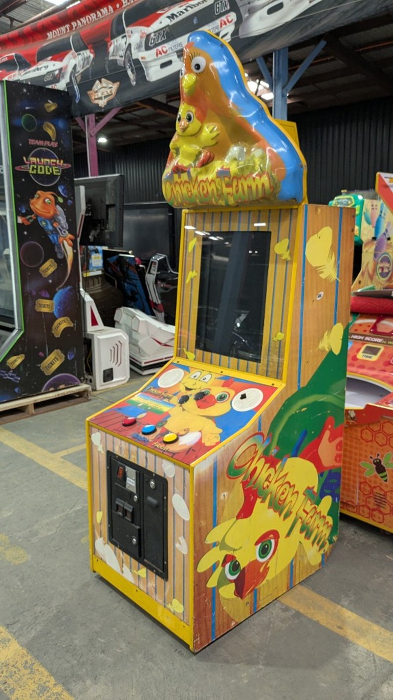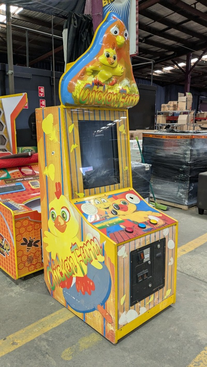 Amusement Machine, Chicken Farm Dimensions: 230cm x 69cm x 92cm Note, untested, Advised in working order, No coin mechanism, Damage to transport wheels