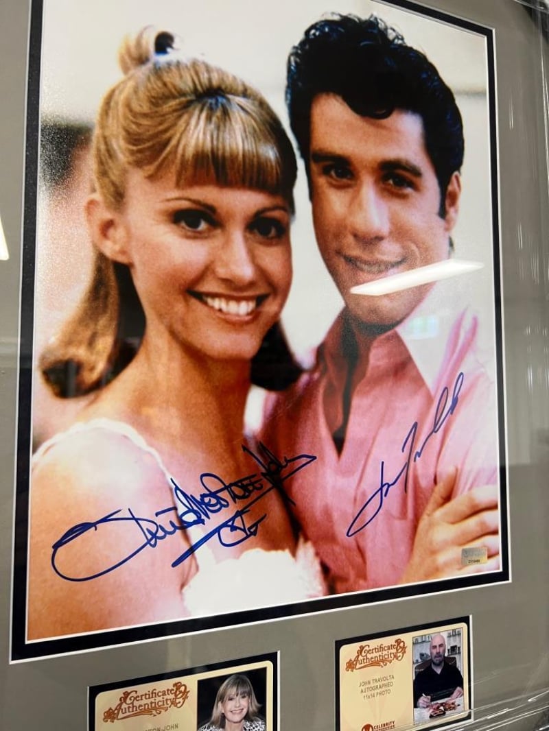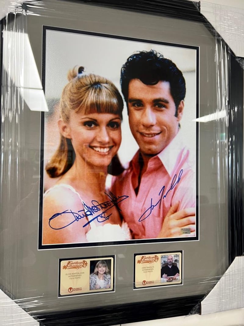 This 11"X14" Framed Photo (Approximately 18”X22” Finished) Of Rydell Sweethearts Sandy And Danny From Grease Has Been Personally Hand-Signed By Olivia Newton-John And John Travolta During Their Signings With Celebrity Authentic. Very Rare And One Of Only Five Signed. From Olivia'S First & Only Private Signing To Date! Ships Affixed With The Celebrity Authentics Serial-Numbered And Tamper Evident Authentication Hologram And Includes Celebrity Authentics Certificates Of Authenticity Featuring Picture Of Olivia And John Signing The Photo. Exact Item Pictured Is What You Will Receive.