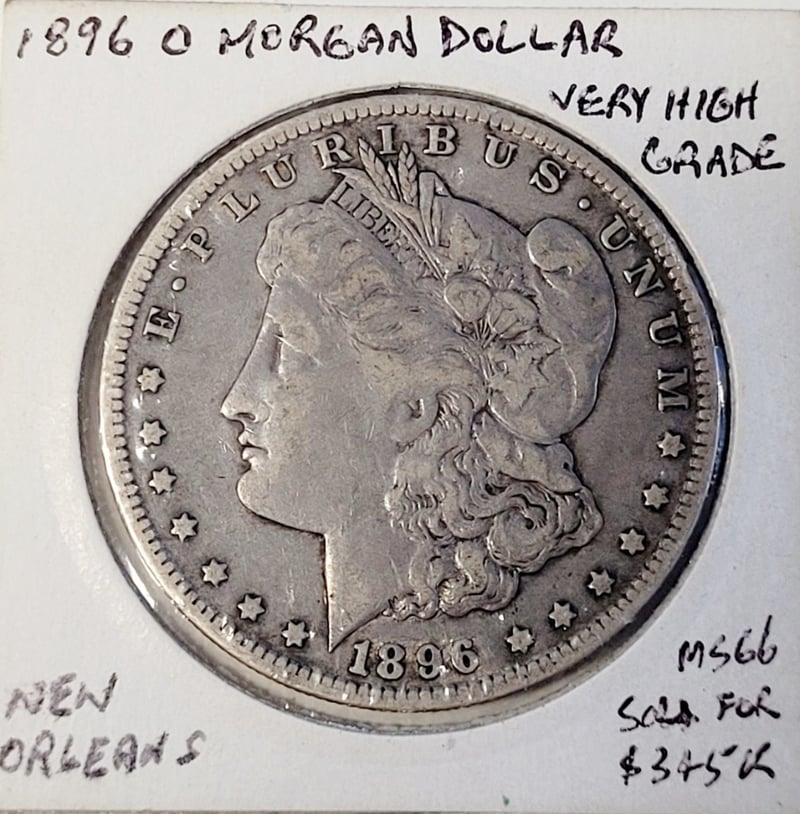 1896 O MORGAN SILVER DOLLAR USA, HIGH GRADENew Orleans ( "O" ) Mint Mark Silver 0.9/26.73G488274+60
