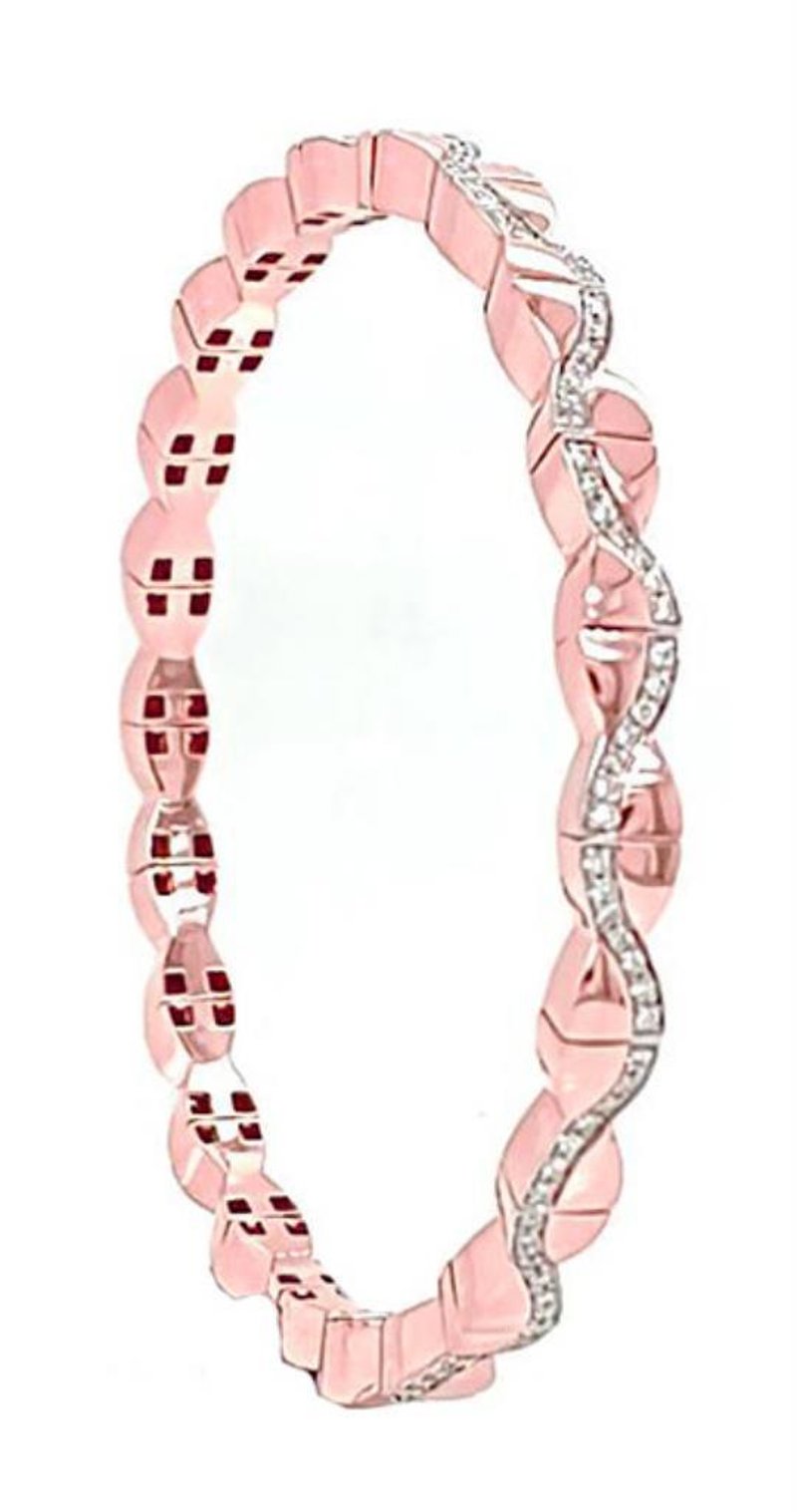 9K ROSE GOLD DIAMOND WAVE BRACELET Total Item Weight: 14gms 154D=0.77Ct 9K Rg Expandable Bracelet With Diamond Wave, 154D = 0.77Ct, Si1 G. 55Mm. Markings: 9K / 375 Jewellery Valuations Provided By A Third Party Professional Not Directly Associated With Lloyds Auctions at AUD $7640This Insurance Valuation has been provided by a registered Jewellery Valuer and is intended for insurance purposes only. The valuation amount has no bearing on the auction value of the item. Any questions regarding the valuation should be directed to the issuing Valuer (refer to contact details on the certificate) as Lloyds have no association or relationship with the Valuer or the valuation amount contained within the valuation. Condition: Good - Refer Images 0162965+13Crossdock