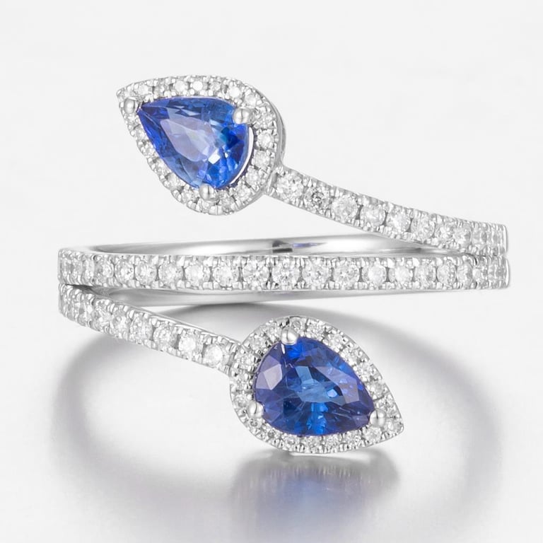 14CT WHITE GOLD AUSTRALIAN SAPPHIRE AND DIAMOND SPIRAL RING FEATURING CENTRE, 2 PEAR CUT, DEEP DARK BLUE AUSTRALIAN SAPPHIRES (1.29CT TSW, MODERATELY INCLUDED), CLAW SET, WITH 86 ROUND BRILLIANT CUT DIAMONDS (0.38CT TDW, G-H COLOUR, VS1-VS2 CLARITY), BEAD SET. RING SIZE O. Valuations Provided by an Independent Third-Party Professional Not Directly Associated With Lloyds Auctions at AUD $17000This valuation has been conducted by an independent third-party professional. The valuation amount is an assessment by the issuing valuer and does not reflect the auction value of the item. Any inquiries regarding the valuation should be directed to the issuing valuer (refer to contact details on the certificate), as Lloyds Auctions has no affiliation or influence over the valuation, the valuer, or the stated amount. Condition: Good - Refer Images 0+468