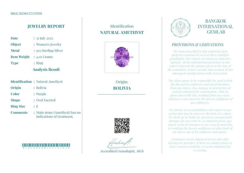 Comments : Main Stone (Amethyst) Has No Indications Of Treatment.