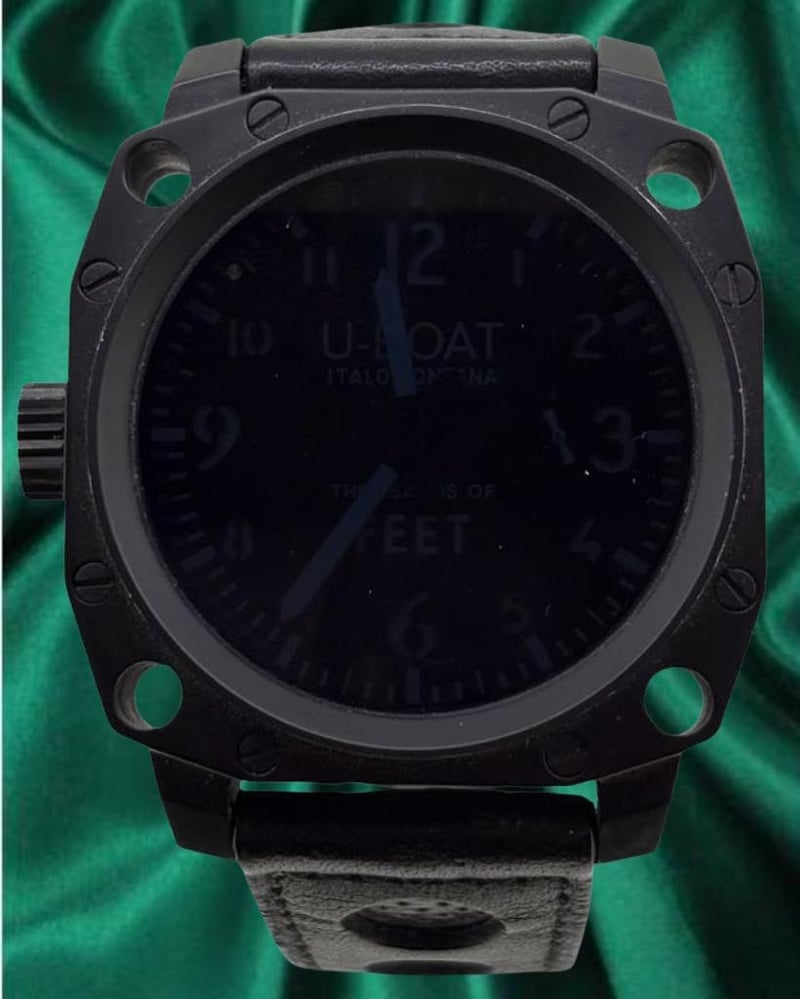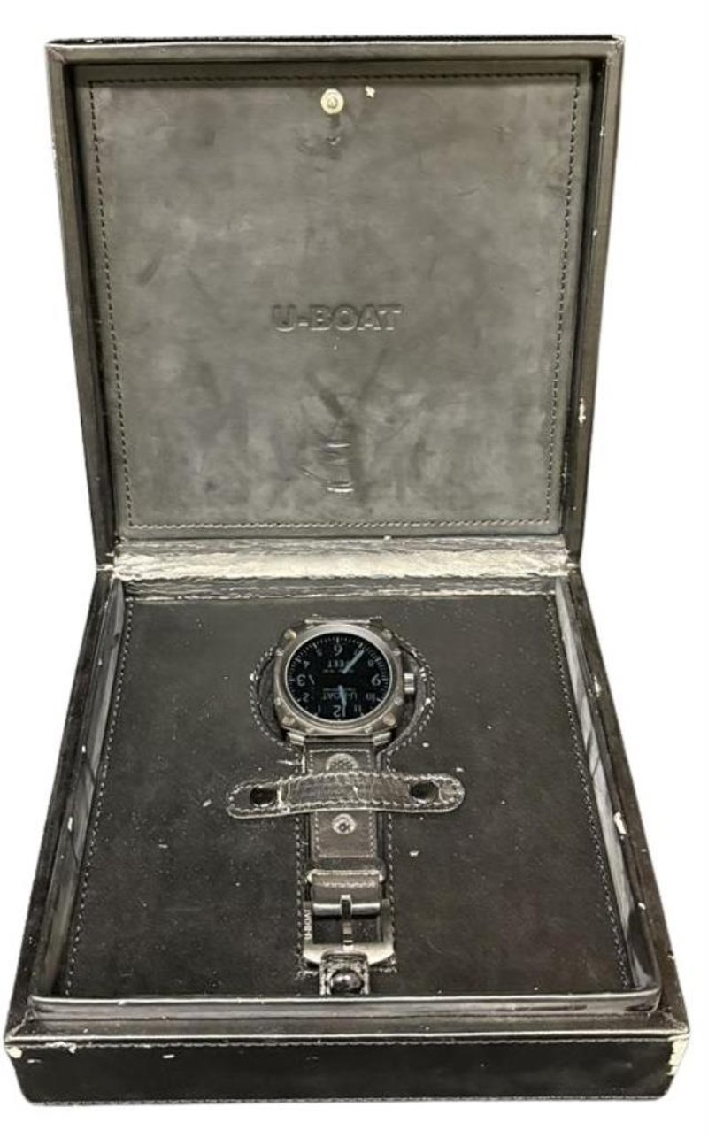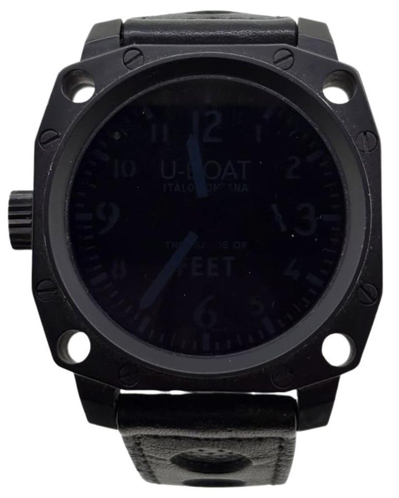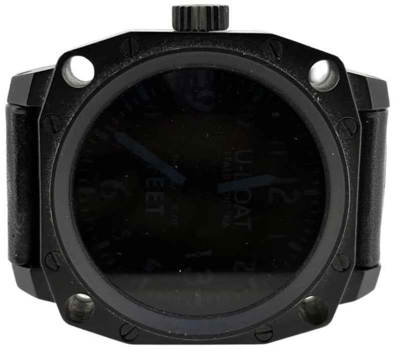 UBOAT BP THOUSANDS OF FEET 443742001 Price Guide - $3,000 - $4,000 REFERENCE NO: 443742001 DIAL: BLACK CASE DESCRIPTION: STAINLESS STEEL CASE SIZE: 50MM BRACELET: LEATHER MOVEMENT: MANUAL WINDING BOX: Box Included PAPERS: Papers Included Condition: Used - Refer Images Additional Information: Serial# 268*** SR