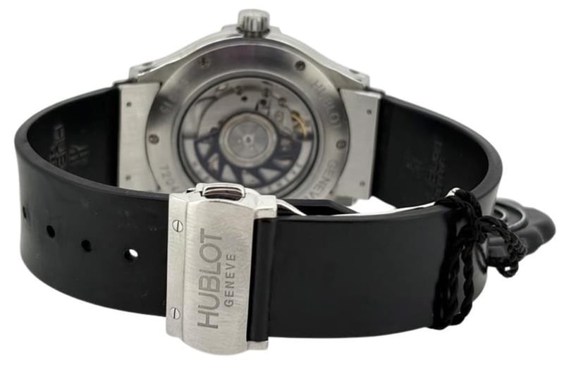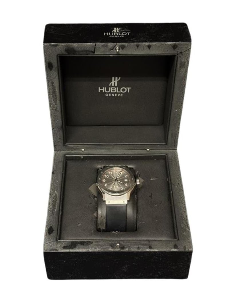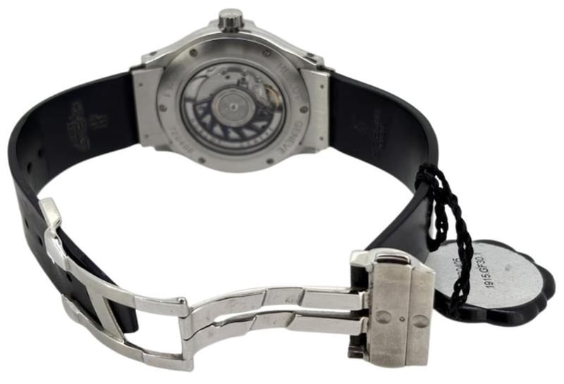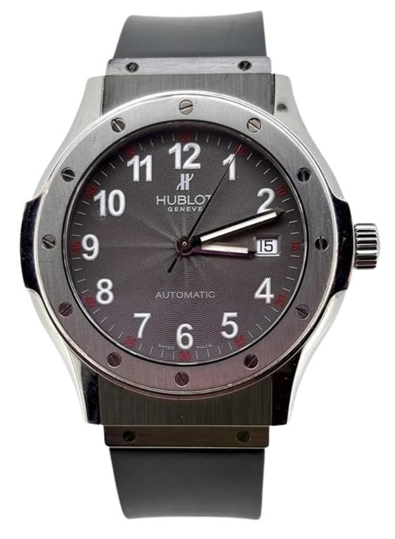 HUBLOT BP CLASSIC FUSION B19151 Price Guide - $5,000 - $7,000 REFERENCE NO: B19151 DIAL: GREY CASE DESCRIPTION: STAINLESS STEEL CASE SIZE: 42MM BRACELET: RUBBER MOVEMENT: AUTOMATIC BOX: YES PAPERS: YES Condition: Used - Refer Images Additional Information: Serial# 720*** SR
