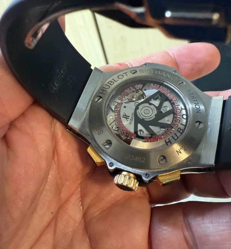HUBLOT BIG BANG Brand: Hublot Dial: BLACK Case Size: 44MM Bracelet: RUBBER Box: Yes Papers: Yes Condition: Good - Refer to Images