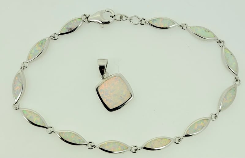 STERLING SILVER CREATED OPAL PENDANT AND BRACELET