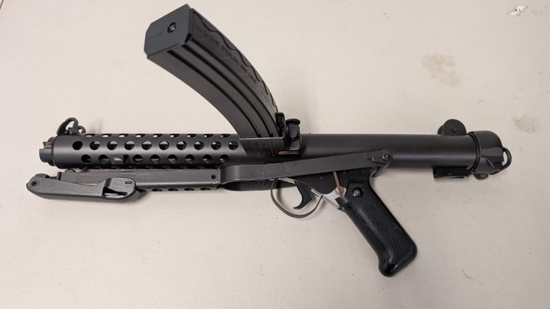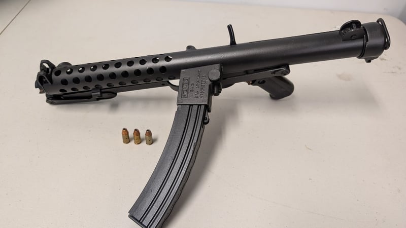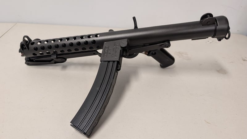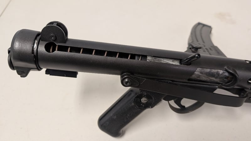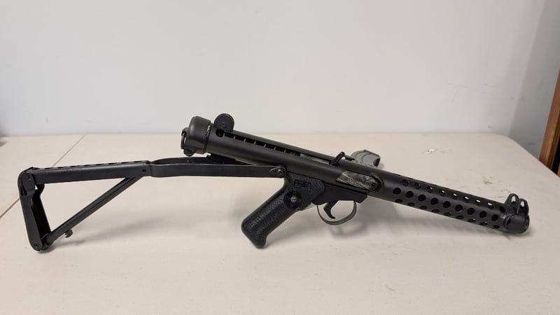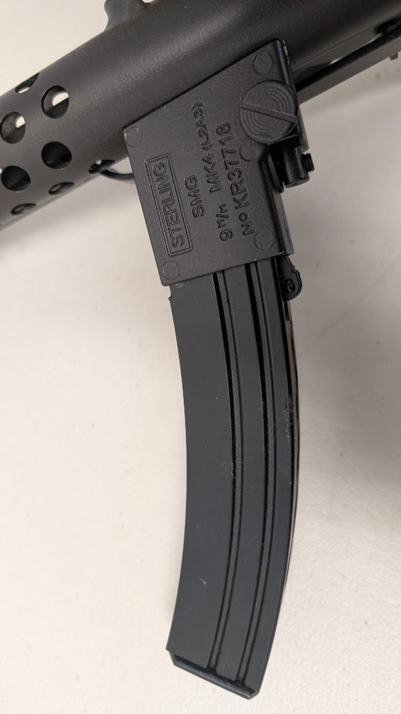 L2A3 STERLING SMG ALUMINIUM REPLICA OF BRITISH SUB MACHINE GUN WITH RESIN REPLICA 32 ROUND MAGAZINE AND INERT 9MM BULLETS. HAND PAINTED WITH FOLDING STOCK. Note: Folding Stock Screws Can Be Stripped If Handled Roughly Said Screw Also Restrict Bolt From Being Fully Moved/Pulled Back To Prevent Potential Slam Damage To The Aluminium. The Screws Can Be Cut Down To Allow Full Movement But Might Cause The Mentioned Slam Damage If Used To Rough. Condition: Good - Refer To Images SR 562185+1