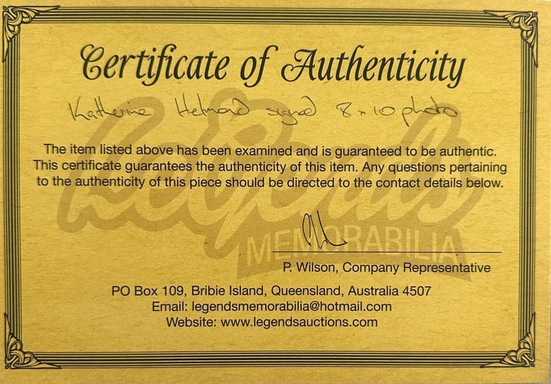 Katherine Helmond Personally Signed 8 X 10 Photo. Katherine Helmond Was An American Actress. Over An Acting Career Spanning Six Decades, She Was Best Known For Her Starring Role As Jessica Tate On The Sitcom "Soap". The Item Is Accompanied By A Certificate Of Authenticity.