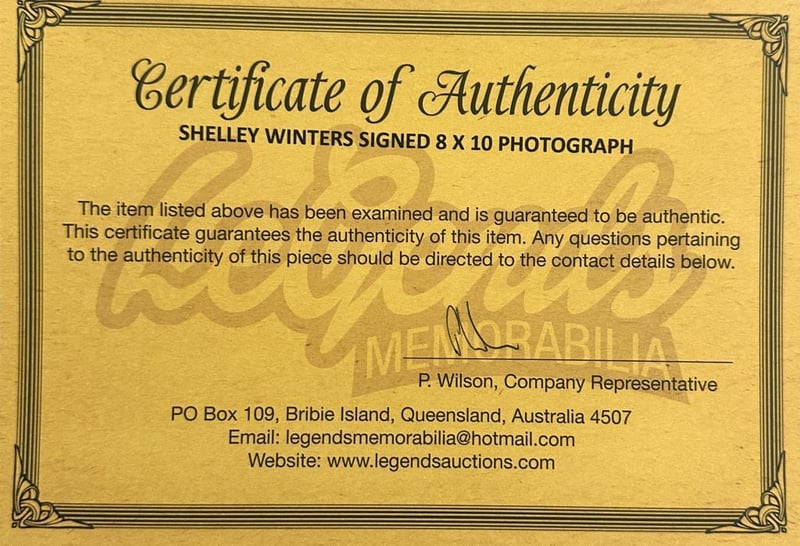 Shelley Winters Personally Signed 8 X 10 Photo From The Original Cult 1960;S Series 'Batman'. Shelley Winters Was An American Film Actress Whose Career Spanned Seven Decades. Winters Won Academy Awards For The Diary Of Anne Frank And A Patch Of Blue. The Item Is Accompanied By A Certificate Of Authenticity.