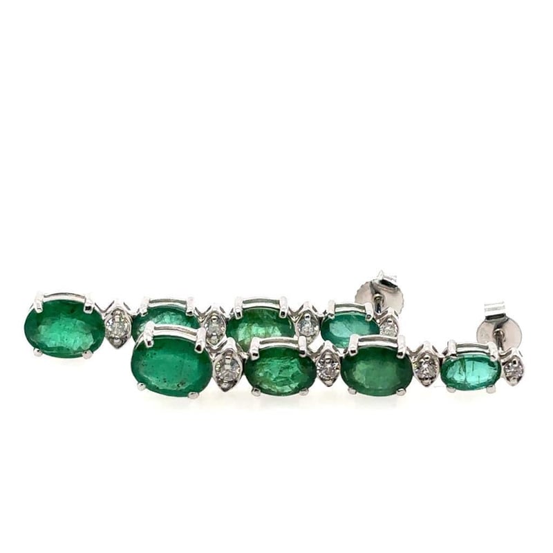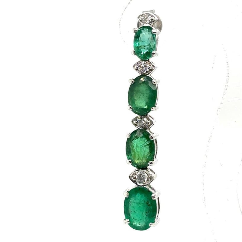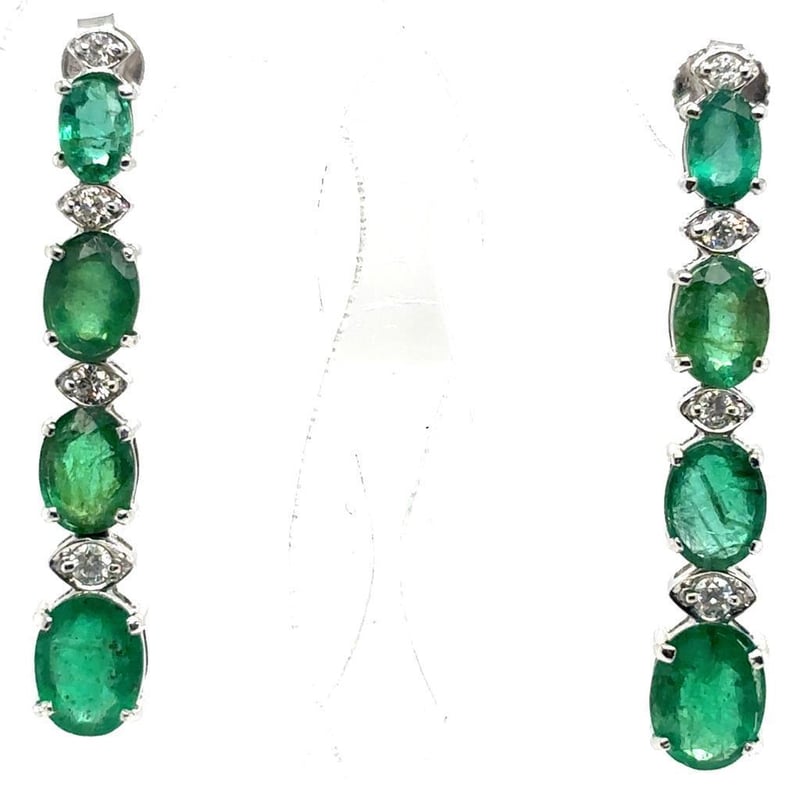 18K WHITE GOLD EMERALD AND DIAMOND EARRINGS