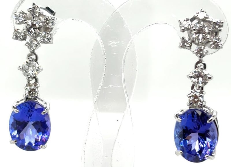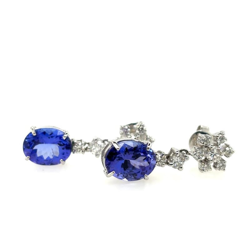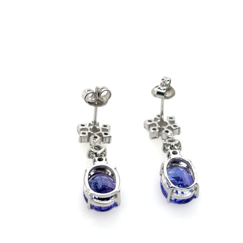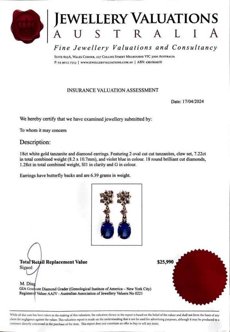 These 18Ct White Gold Earrings Feature 2 X Oval Cut Claw Set Tanzanite, 7.22Ct In Total Combined Weight, Measuring 8.2 X 10.7Mm And Violet Blue In Colour With 18 X Round Brilliant Cut Diamonds, 1.28Ct In Total Combined Weight, Si1 In Clarity And G In Colour.
