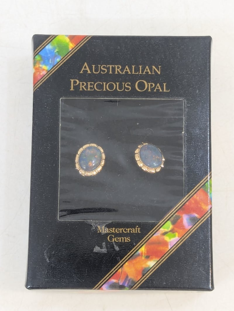 YELLOW GOLD PLATED RING AND 925 SILVER AUSTRALIA OPAL EARRINGS Condition: Good - Refer To Images 584947+3