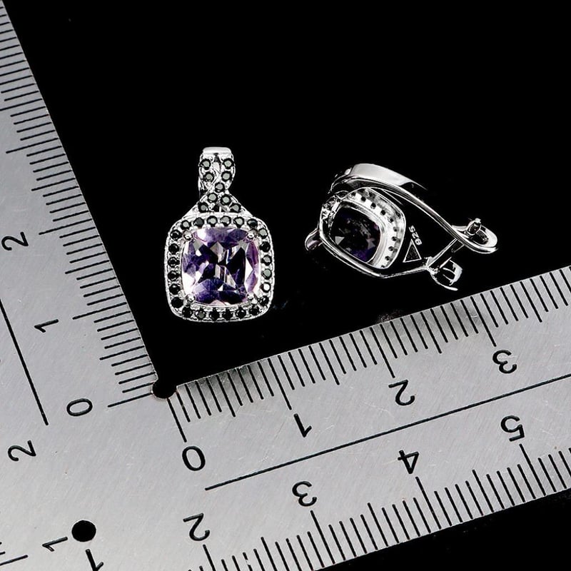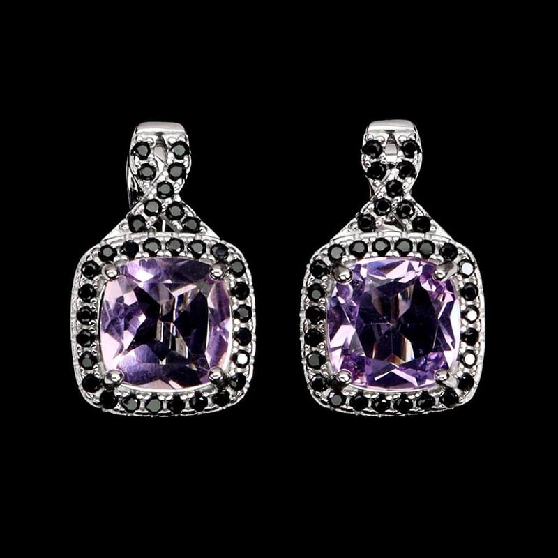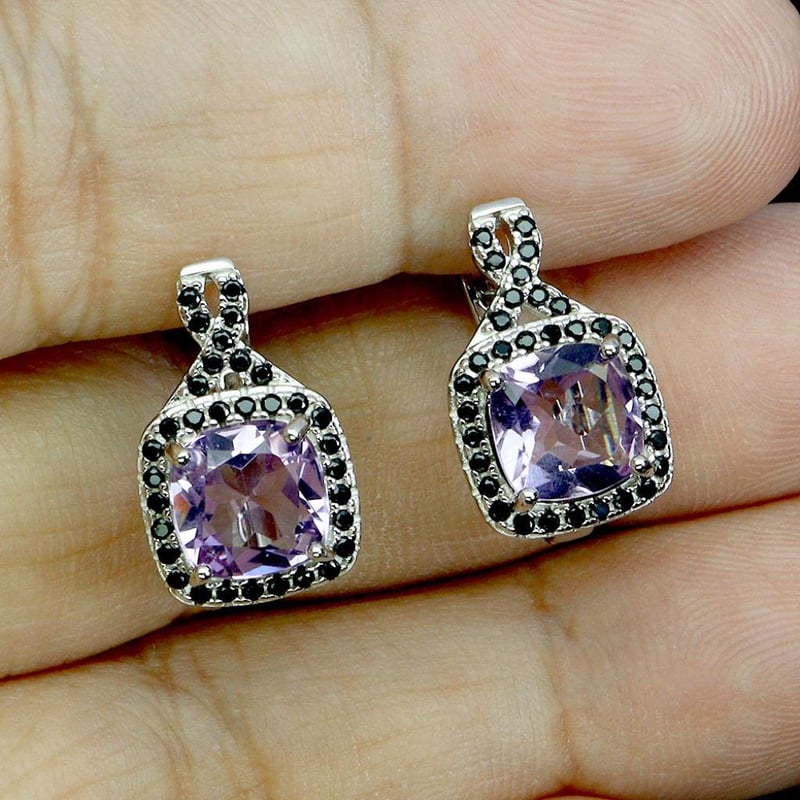 Natural Amethyst & Spinel Earrings. Made In Solid Sterling Silver And Plated In14K White Gold. Feature Natural Purple Amethyst And Natural Black Spinel. Earrings Measure 16.0 X 10.0 Mm.