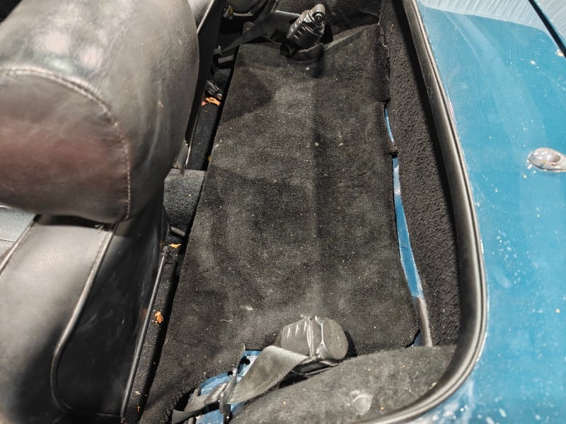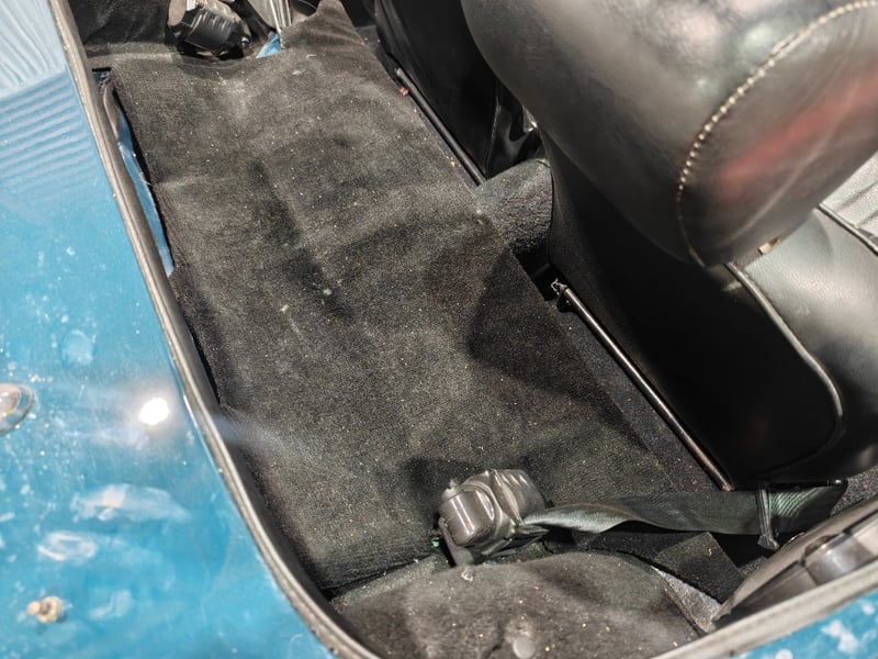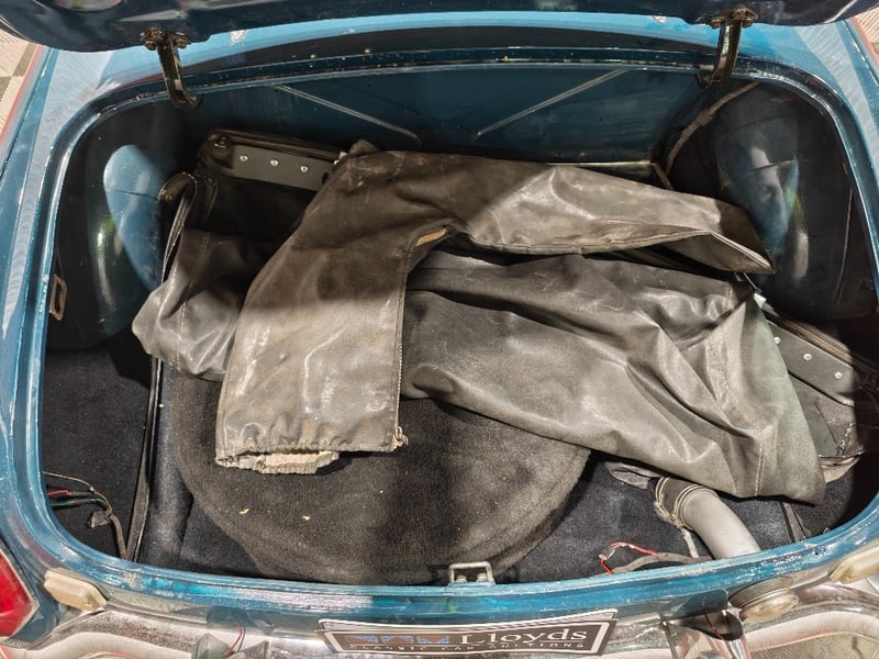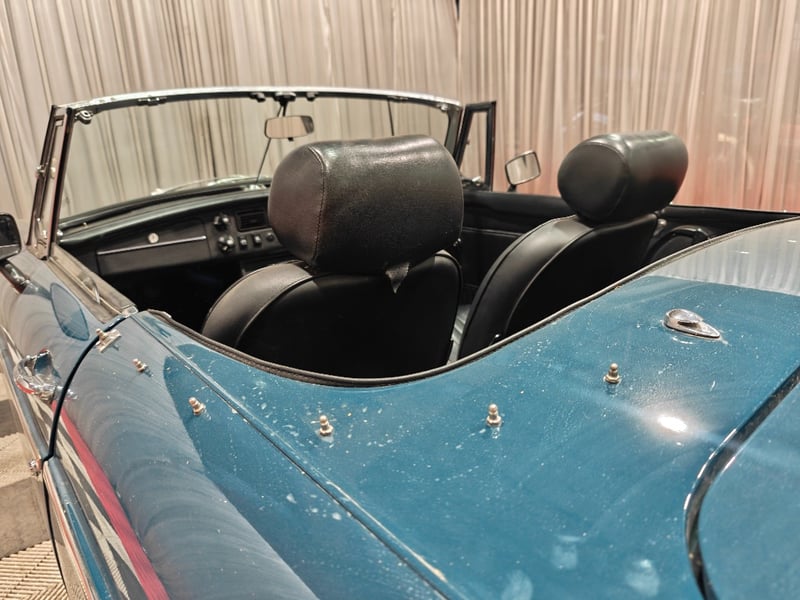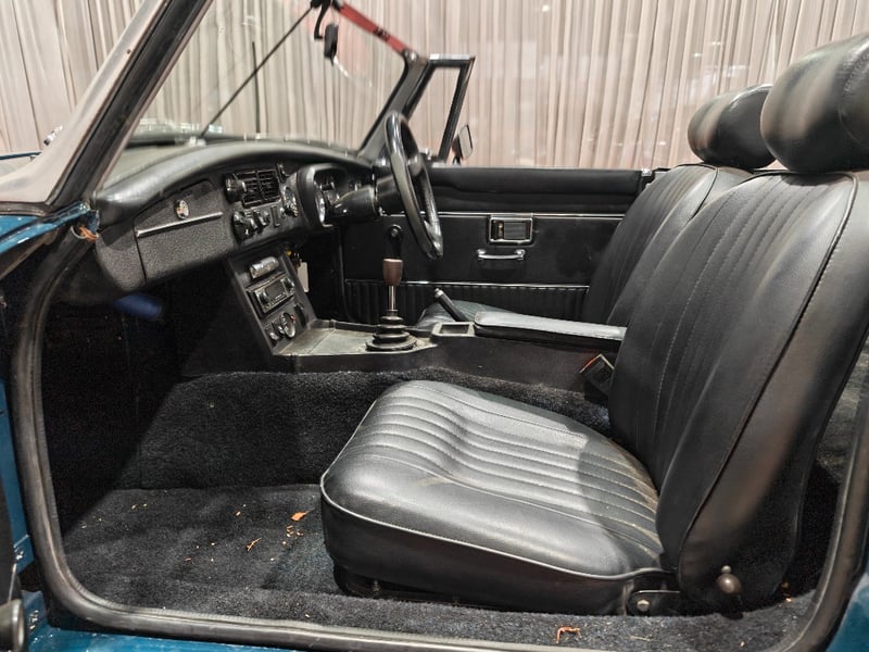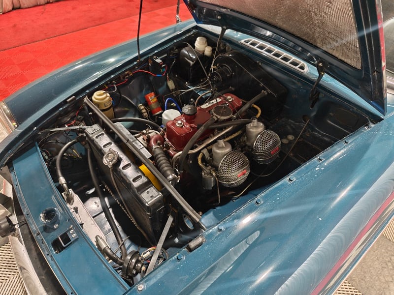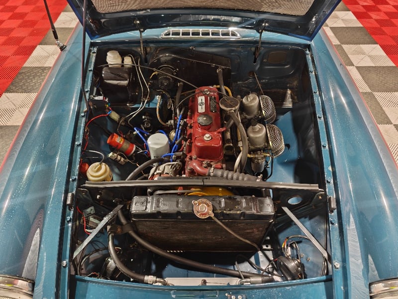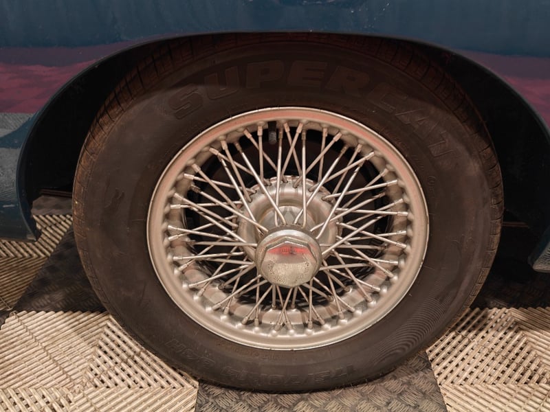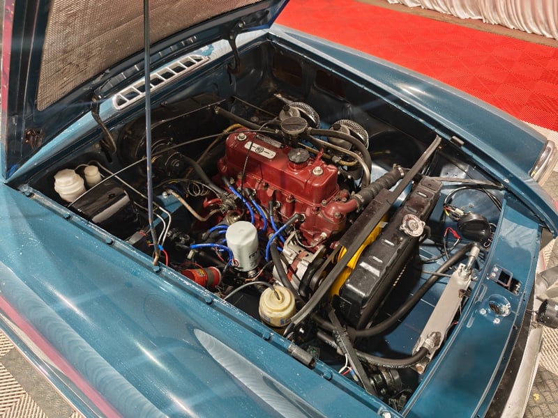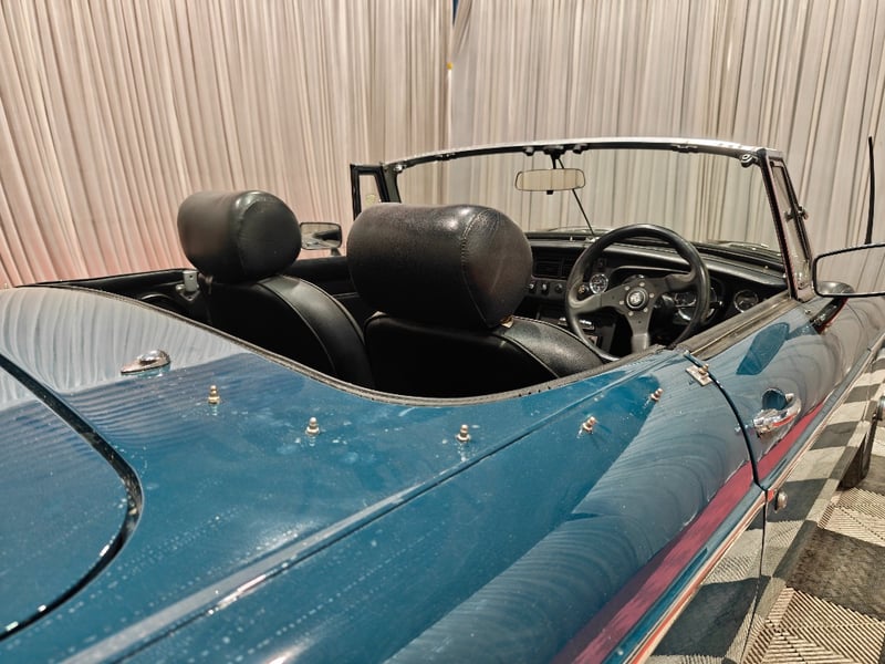 1969 MG B MKII two‑door convertible finished in Blue. Rear‑wheel drive configuration powered by a four‑cylinder petrol engine paired with a manual transmission. Odometer indicating 79,589 miles. Seating for two occupants.