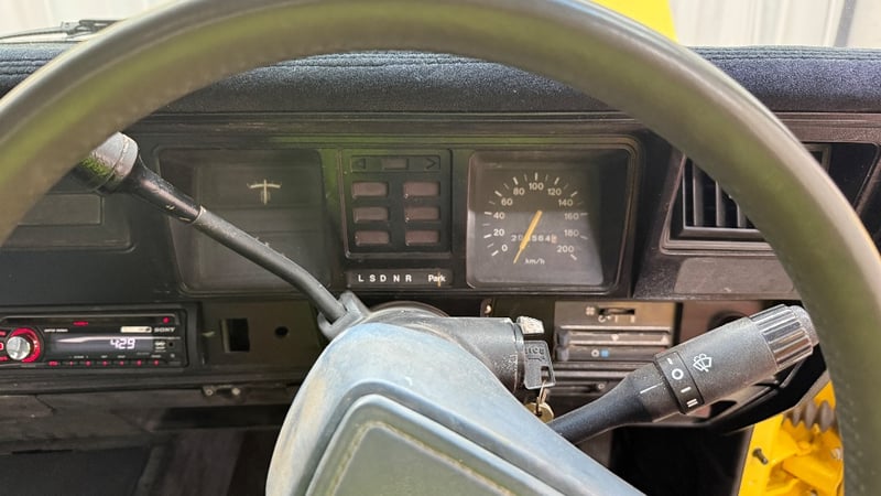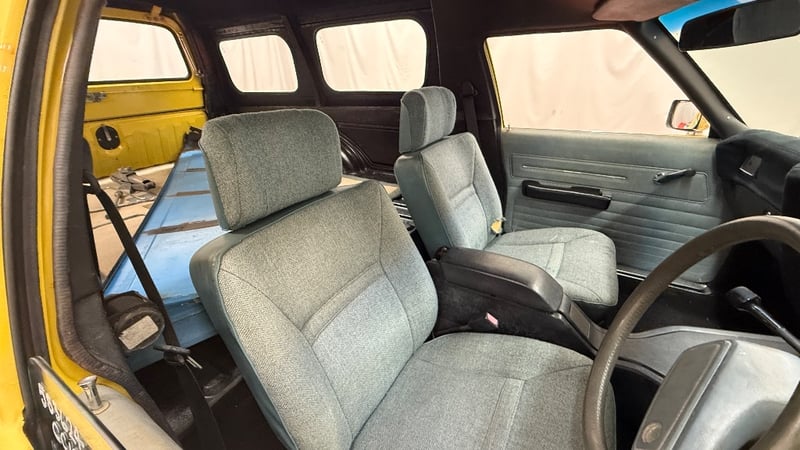 A 1982 Holden WB Panel Van finished in Yellow, powered by a 3.3-litre inline six-cylinder petrol engine paired with an automatic transmission. Rear-wheel drive, odometer indicating 200,564 kilometres.