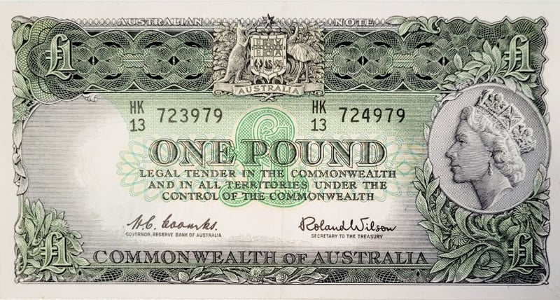 AUSTRALIAN ONE POUND ERROR BANKNOTE COOMBS/WILSON488306+1