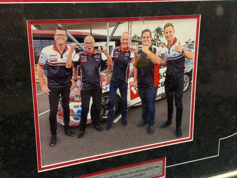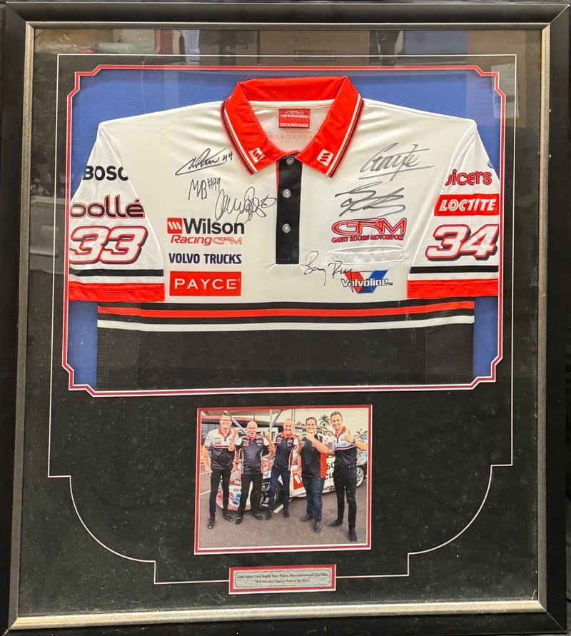 Signatures Include Garth Tander, Garry Rogers, Barry Rogers, Mason Barbera And Chris Pither. Item Includes Frame, Photo And Plaque.