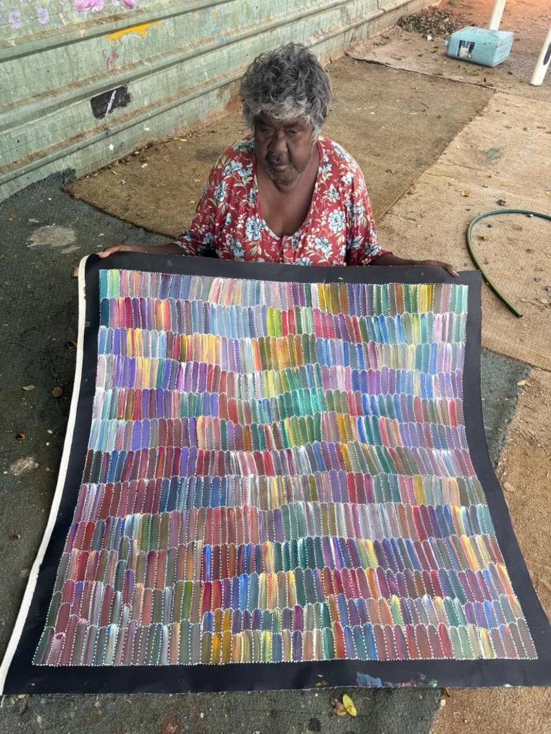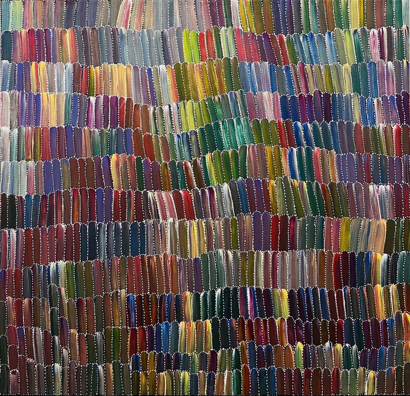 JEANNIE MILLS PWERLE (1965 - ) (UTOPIA REGION, NT) Hand Signed, Original Acrylic On Canvas Title: Bush Yam Image Size: 94Cm X 97Cm Hand Signed: Verso Condition: Excellent - New Stretched And Ready To Hang. Condition: Good - Refer To Images 488316+43