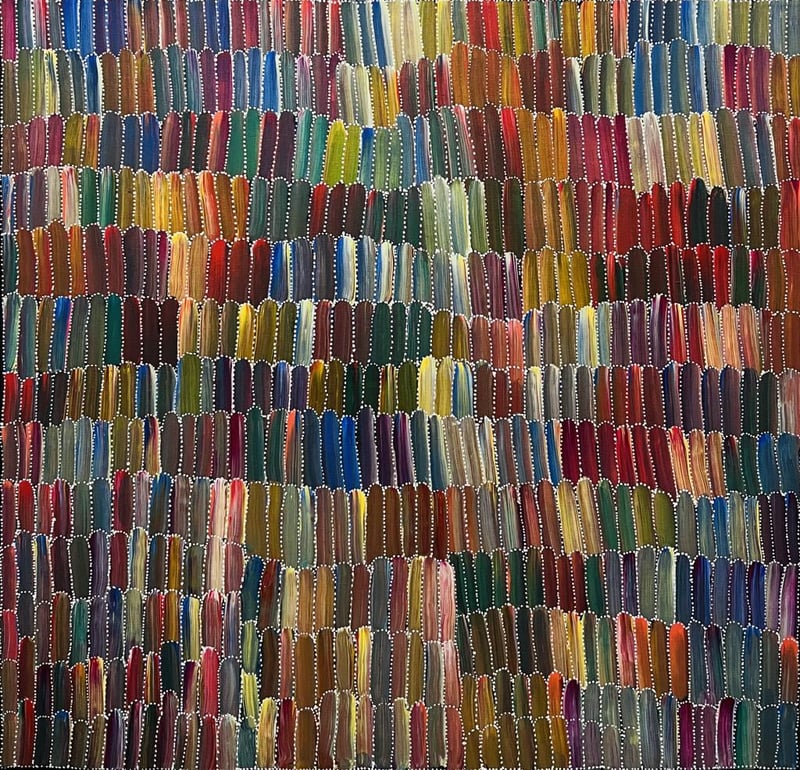 JEANNIE MILLS PWERLE (1965 - ) (UTOPIA REGION, NT) Hand Signed, Original Acrylic On Canvas Title: Bush Yam Image Size: 94Cm X 97Cm Hand Signed: Verso Condition: Excellent - New Stretched And Ready To Hang. Condition: Good - Refer To Images 488316+44