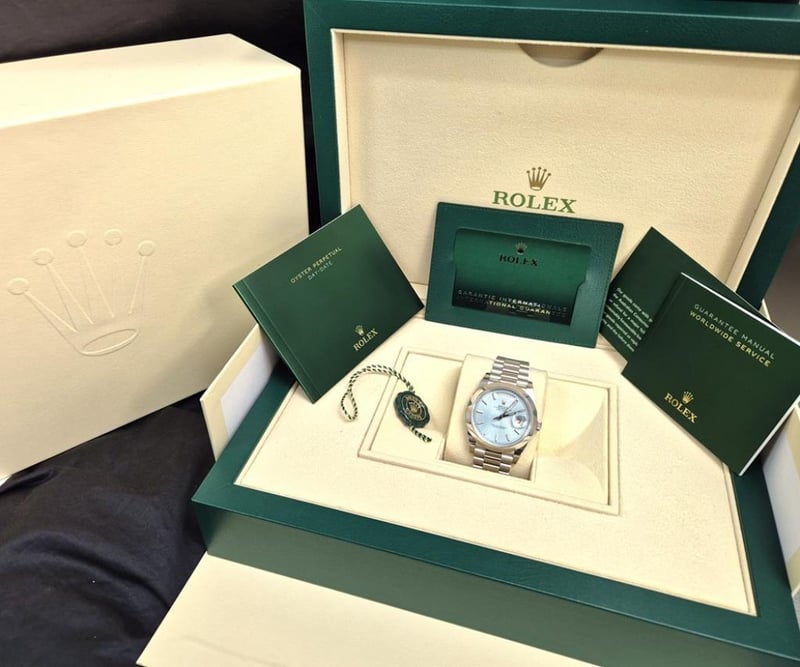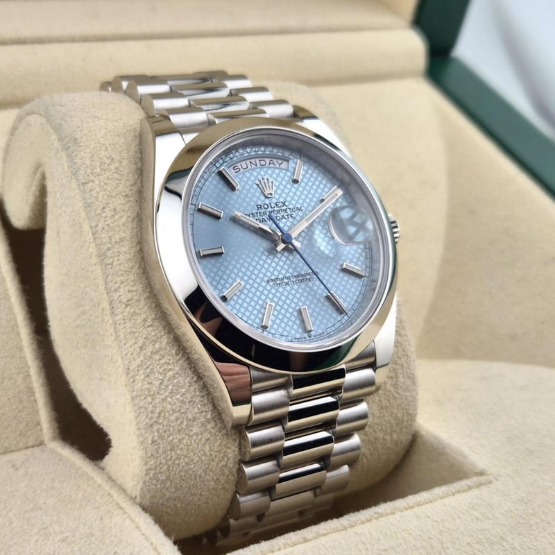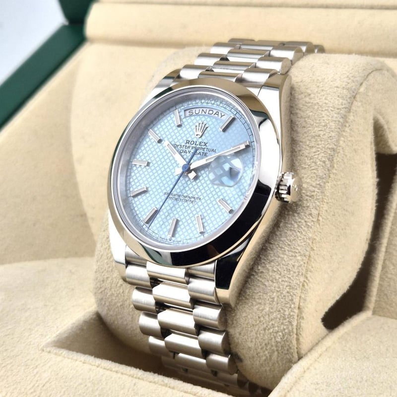 ROLEX 228206 DAY-DATE 40 PLATINUM ICE BLUE MOTIF 40MM 2021 BOX & PAPERS Brand: RolexReference: 228206Model: Day-Date 40 Platinum Ice Blue MotifCase Size: 40MmCirca: 2021Movement: AutomaticCondition: Very GoodBox: YesPapers: Yes Condition: Good - Refer Images 0488323+2