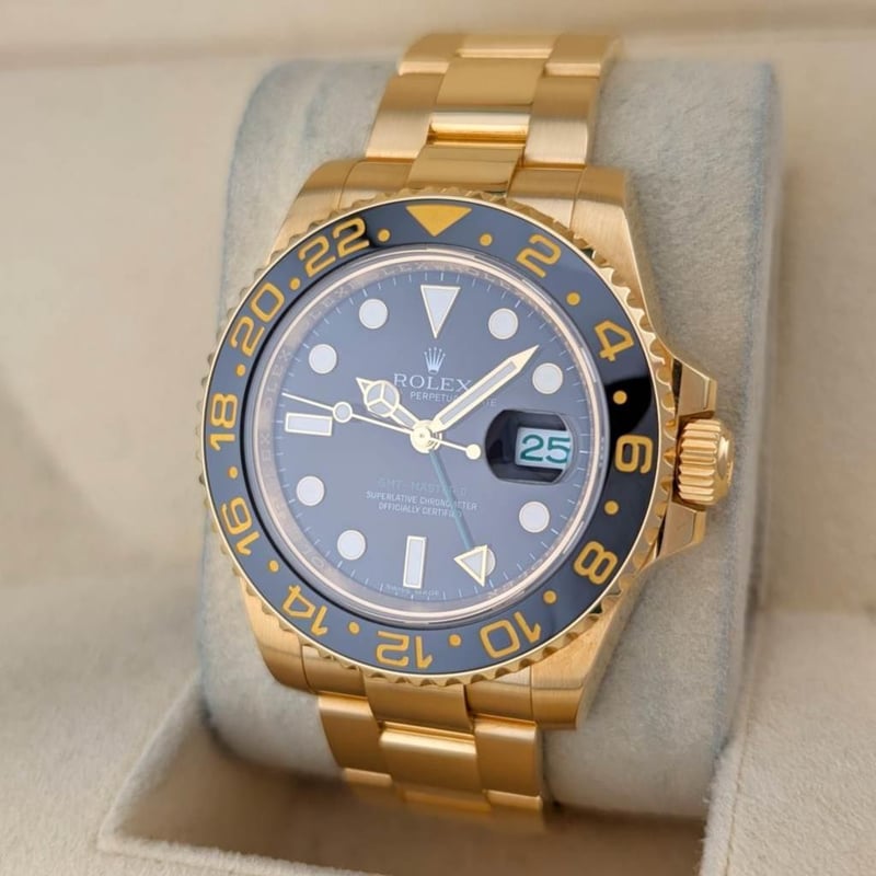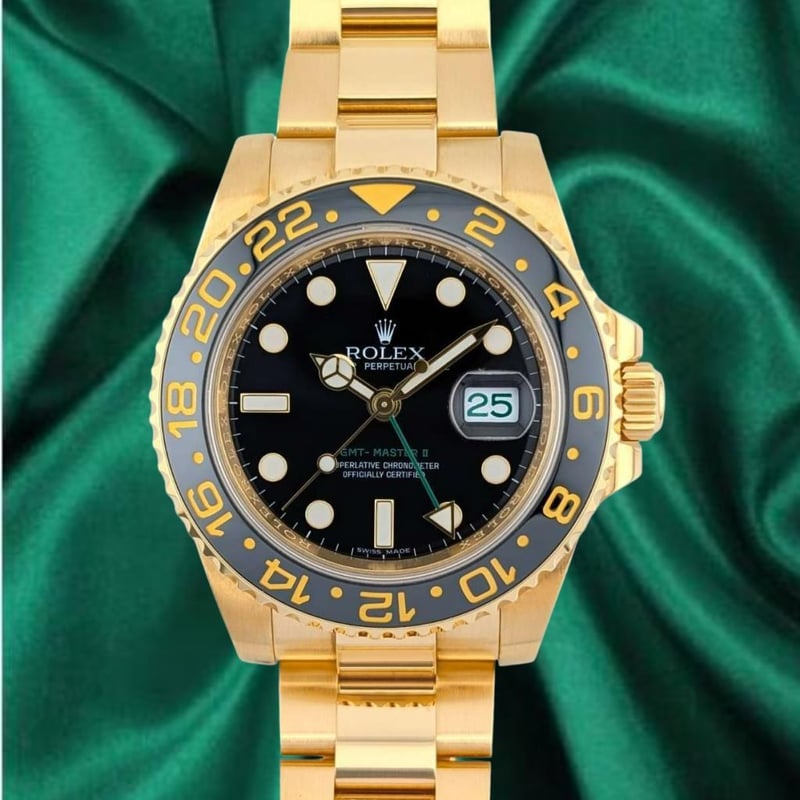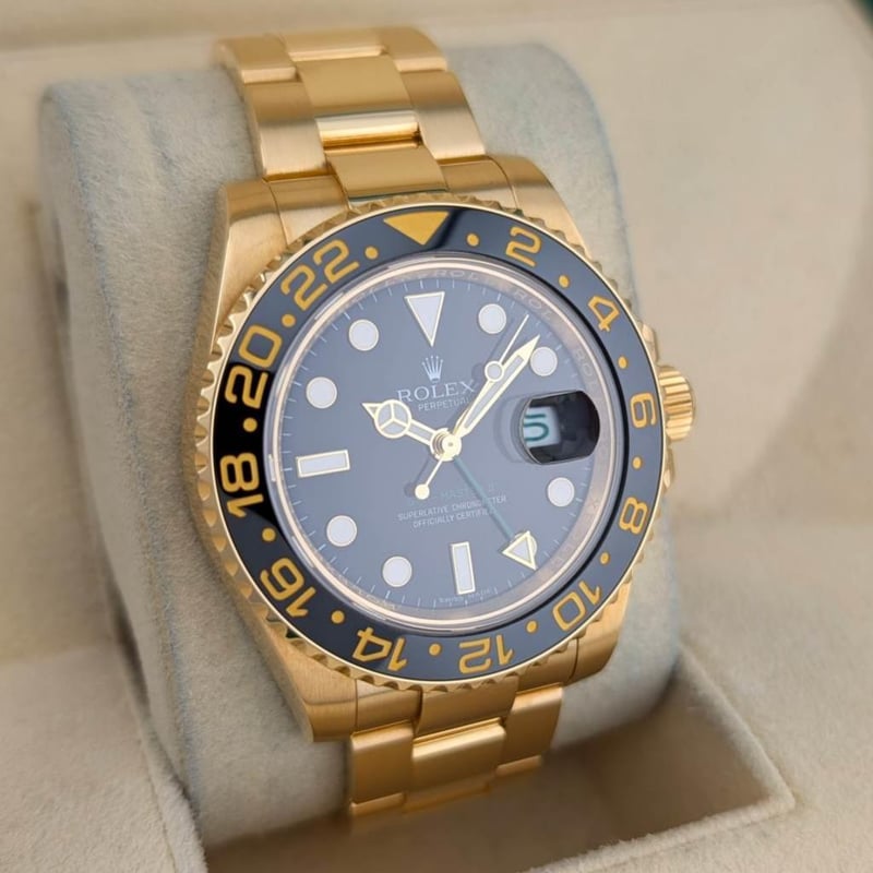 ROLEX 116718LN GMT-MASTER II 18K YELLOW GOLD BLACK DIAL 40MM 2010 BOX & PAPERS Brand: RolexReference: 116718LnModel: Gmt-Master Ii – 18K Yellow Gold, Black DialCase Size: 40MmCirca: 2010Movement: AutomaticCondition: Very GoodBox: YesPapers: Yes Condition: Good - Refer Images 0488323+5