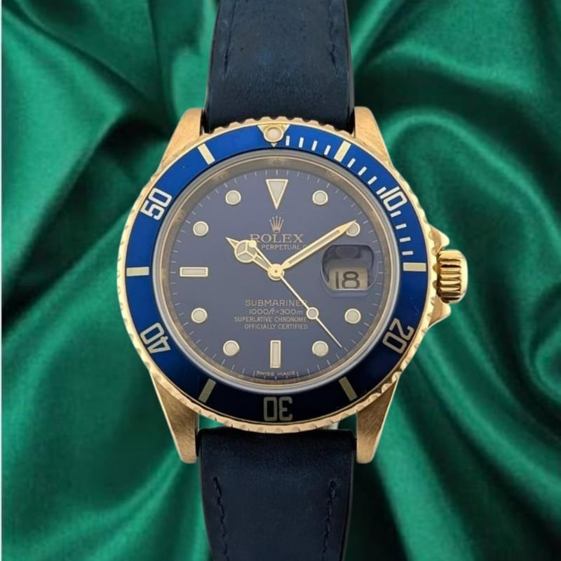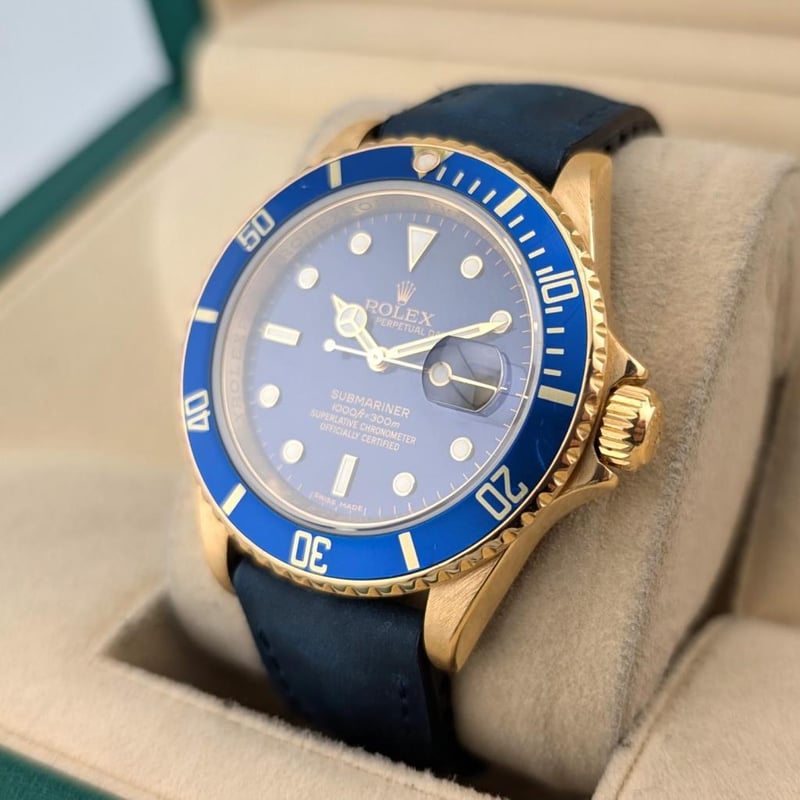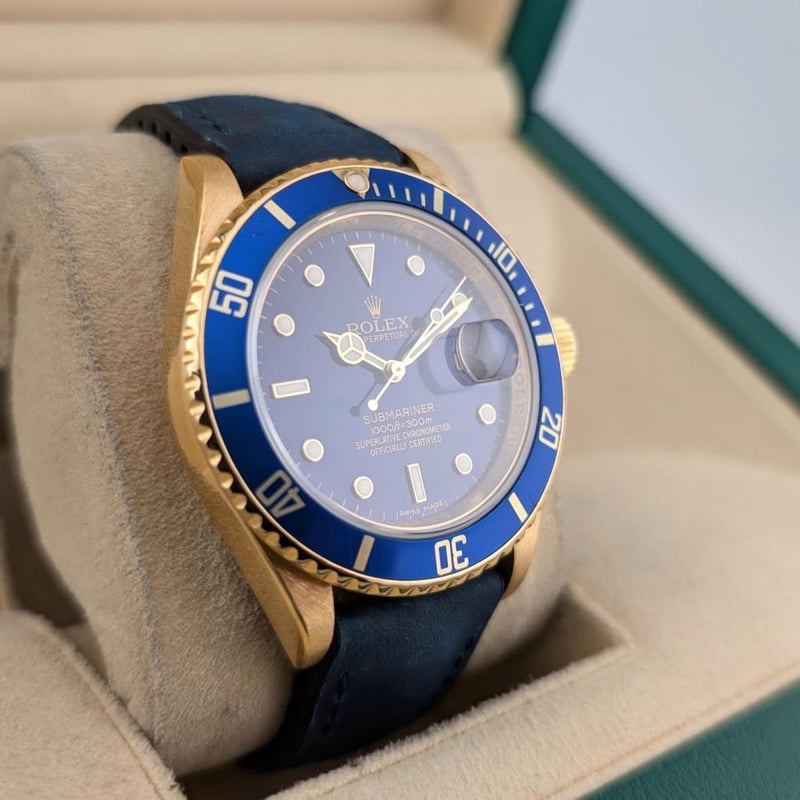 ROLEX 16618 SUBMARINER DATE 18K BLUESY 40MM 2007 Z SERIAL BOX & PAPERS Brand: RolexReference: 16618LbModel: Submariner Date 18K Bluesy With RehautCase Size: 40MmCirca: 2007 Z SerialMovement: AutomaticCondition: Good, On Aftermarket StrapBox: YesPapers: Yes Condition: Good - Refer Images 0488323+7