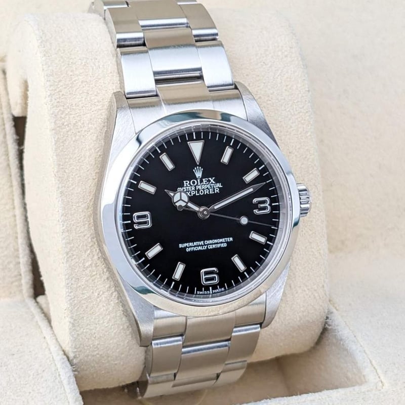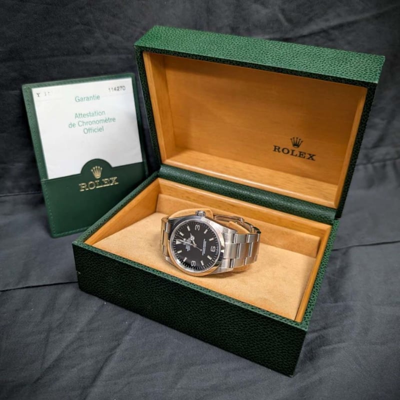 ROLEX 114270 EXPLORER BLACK DIAL 36MM 2003 BOX & PAPERS Brand: RolexReference: 114270Model: Explorer – Black DialCase Size: 36MmCirca: 2003, Y-SerialMovement: AutomaticCondition: Very GoodBox: YesPapers: Yes Condition: Good - Refer Images 0488323+10