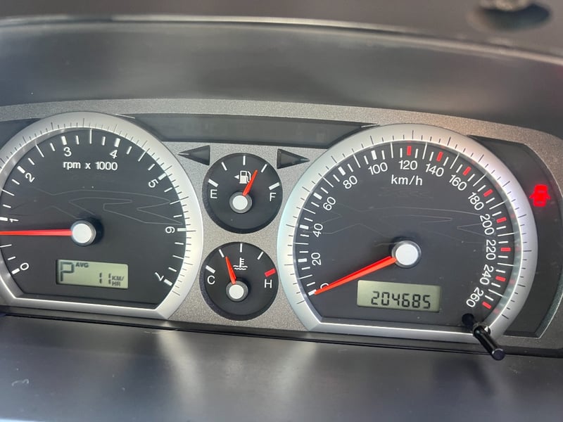 Odometer indicating 204,685 kilometres, automatic transmission, rear-wheel drive.