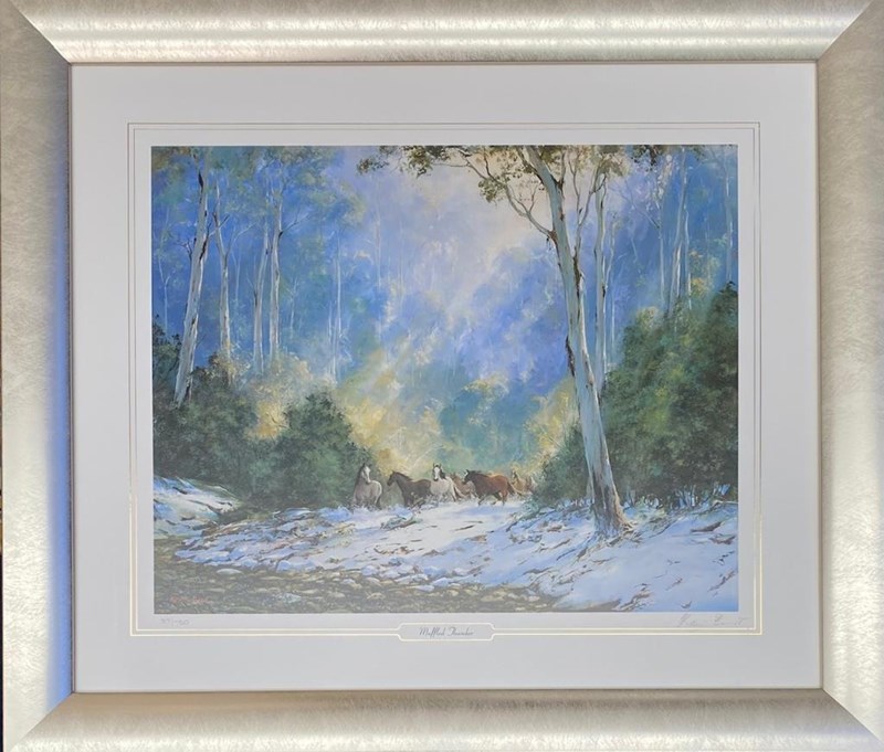 KEVIN BEST (1932-2012) LIMITED EDITION PRINT - MUFFLED THUNDER Framed Using Glass And A Silver Frame Hand Signed By The Artist (Kevin Best) Using A Pencil. Limited Edition Print - Number 37/750 Image 36Cm X 45Cm Condition - Refer To Image 160639+40
