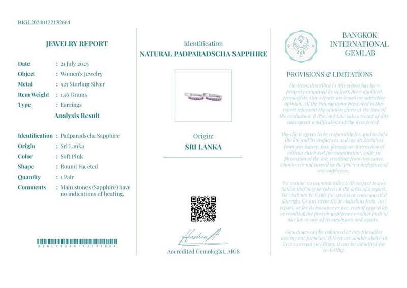 NATURAL PADPARADSCHA SAPPHIRE (UNHEATED) EARRINGS ON 925 SILVER - WITH CERTIFICATE