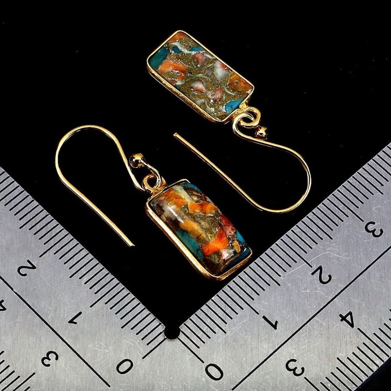 Natural Antique Turquoise Earrings. Made In Solid Sterling Silver And Plated In14K Yellow Gold. Feature Natural Antique Turquoise. Earrings Measure 30X8Mm