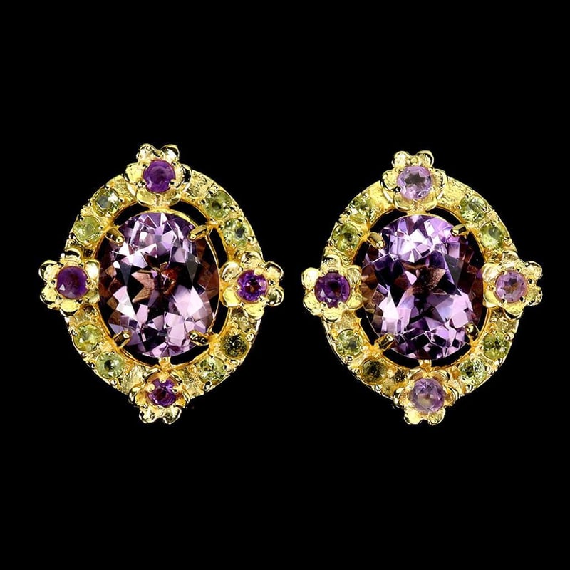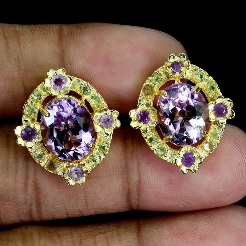 NATURAL PERIDOT & AMETHYST EARRINGS. Natural Peridot & Amethyst Earrings. Made In Solid Sterling Silver And Plated In14K Yellow Gold. Features Amethyst And Peridot. Earrings Measure 20X23Mm Condition: Good - Refer Images 0488375+11