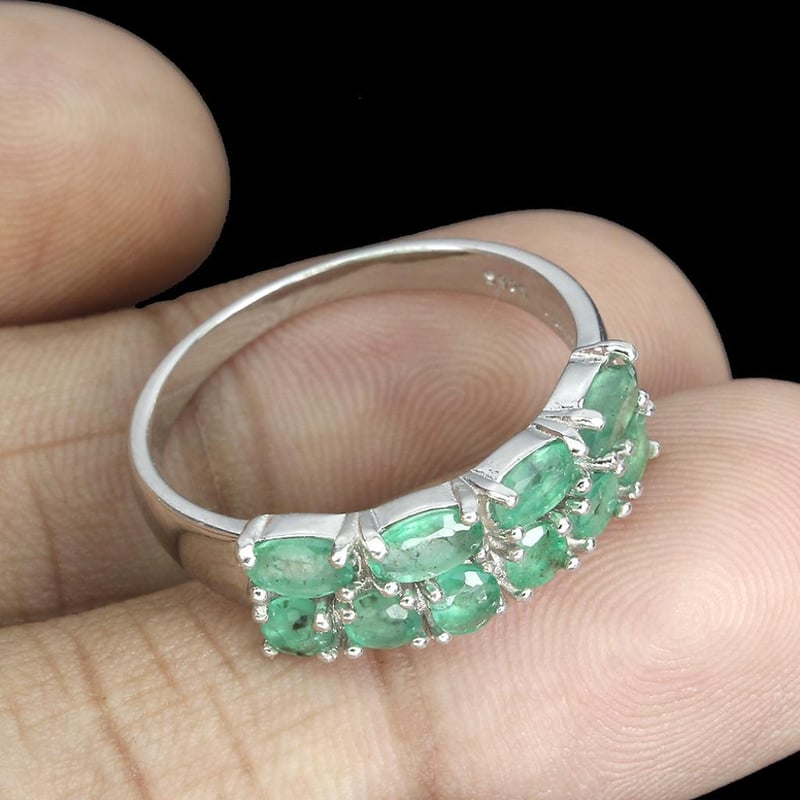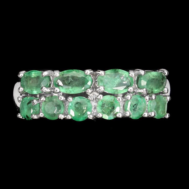 Natural Emerald Ring. Made In Solid Sterling Silver And Plated In14K White Gold. Features Natural Green Emeralds And Sparkling Czs. Ring Size 9