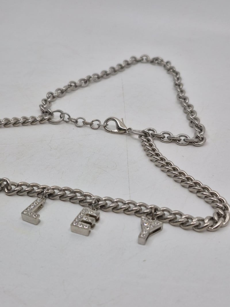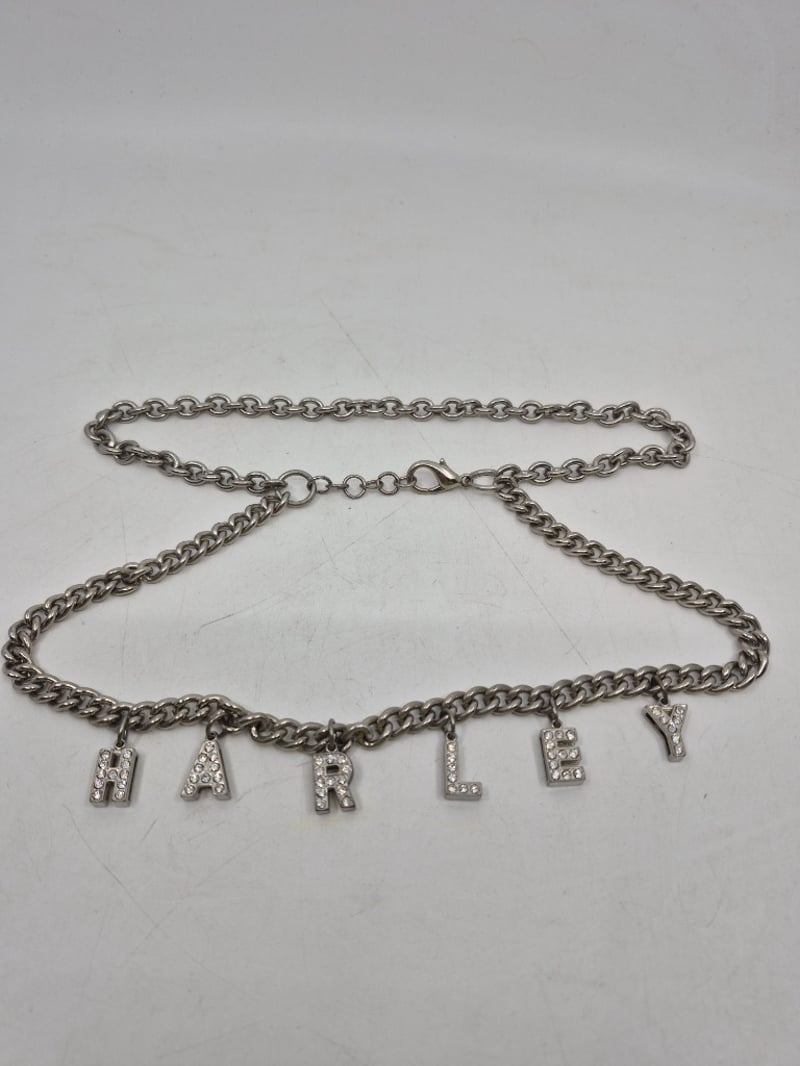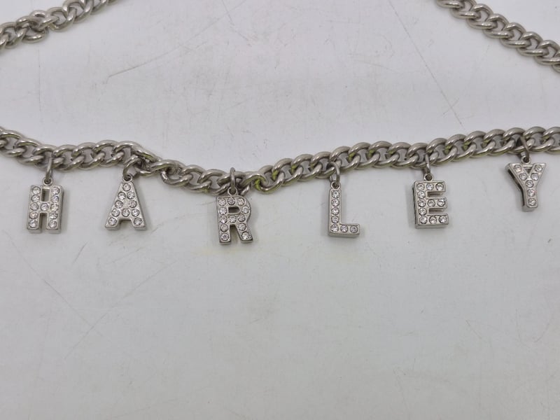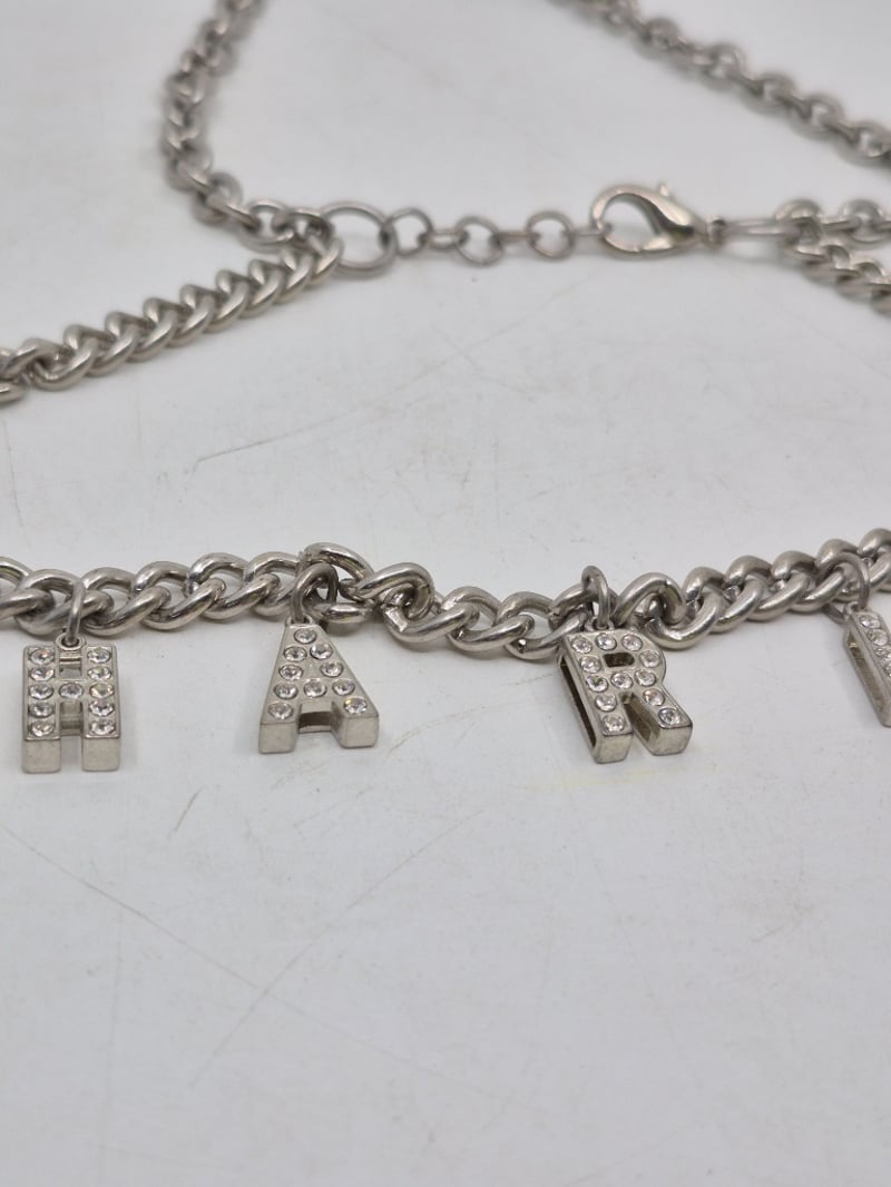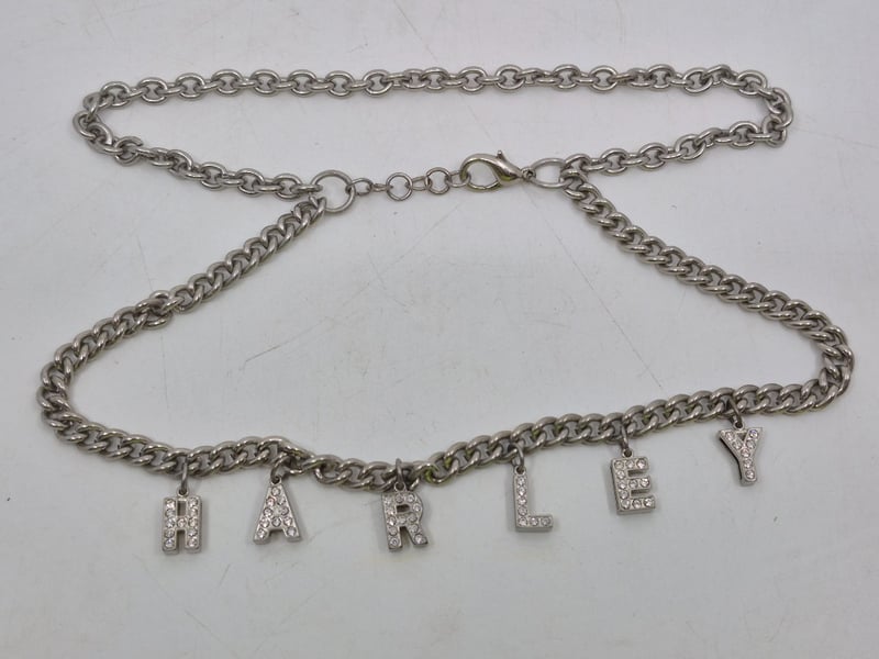 SILVER-TONE CHAIN WITH RHINESTONE LETTER CHARMS "HARLEY"