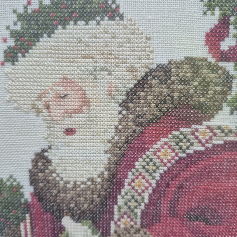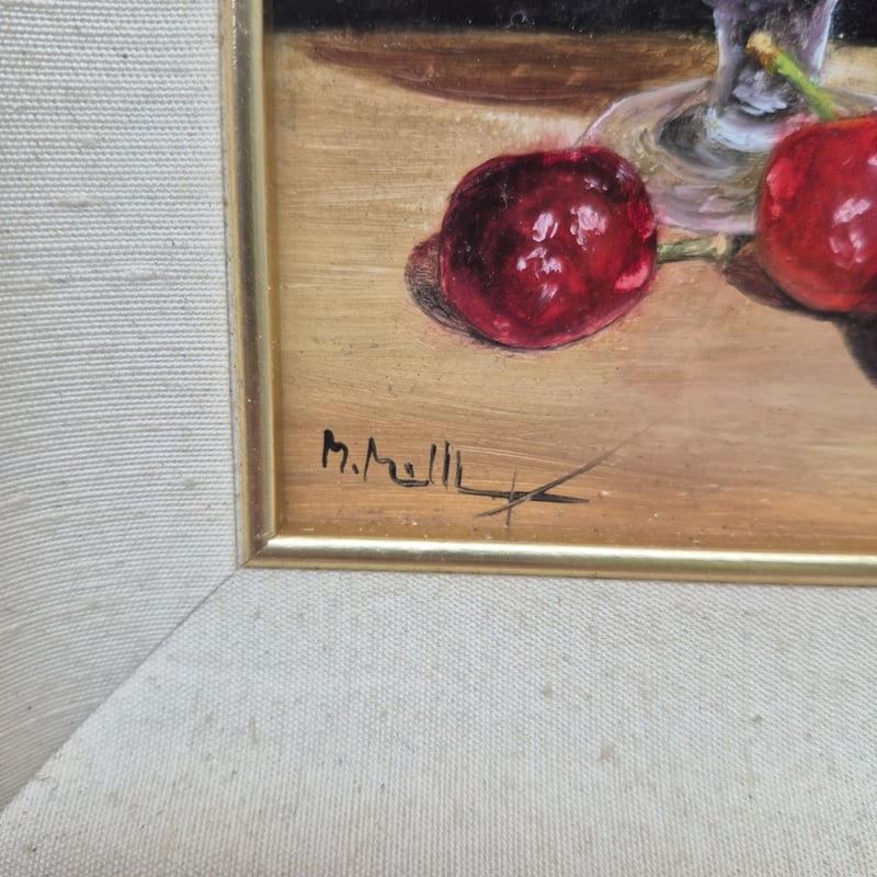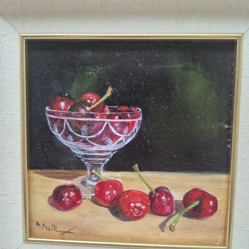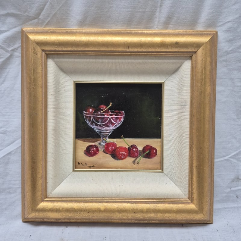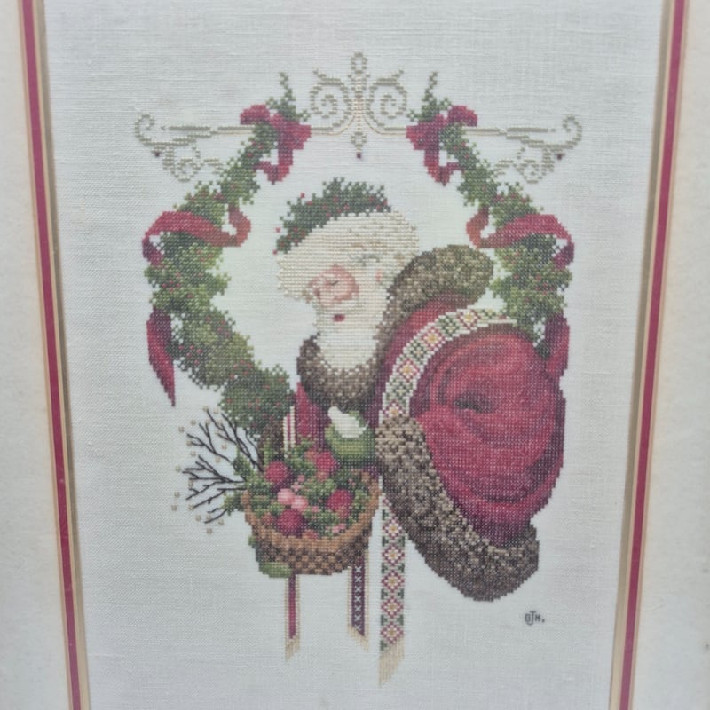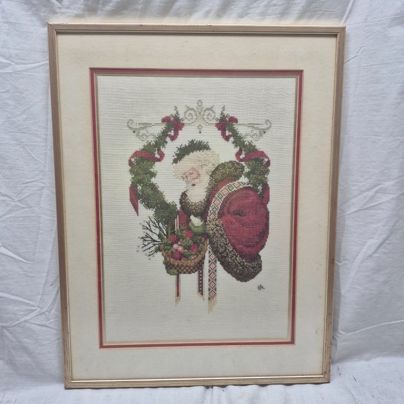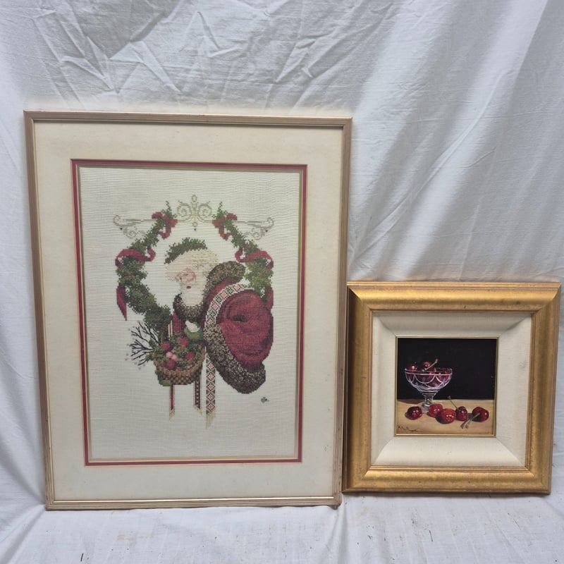 FRAMED EMBROIDERY SANTA CLAUS & CHERRY OIL PAINTINGFrames Signed, Santa Frame Dimensions, 39Cm X 50Cm, Cherry Frame 29Cm X 29CmCondition: Good - Refer To Images2A586244+1