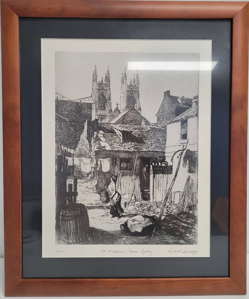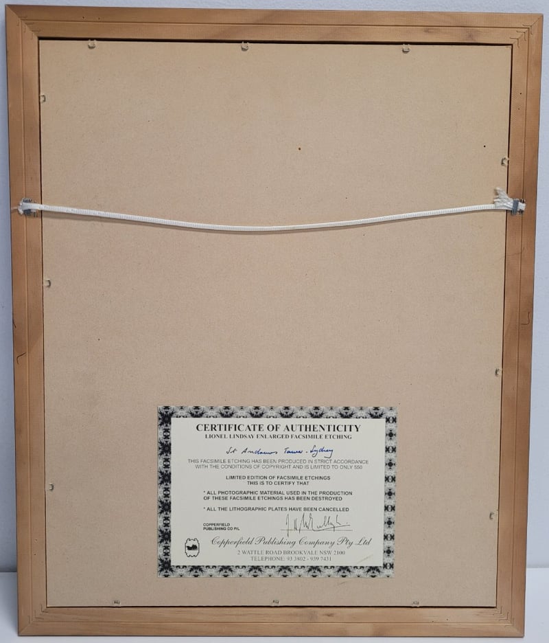 LIONEL LINDSAY 1874 - 1961Print On PaperTitle: St Andrews Tower- SydneyFrame Size: 51cm x 42cmSignature Details: Signed Lower RightCondition: Good - Refer To Images488327+12