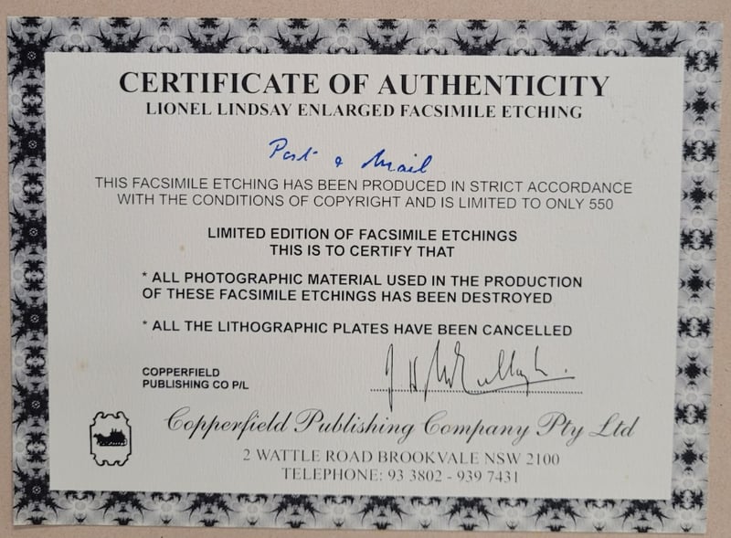 LIONEL LINDSAY (1874-1961)Print On PaperTitle: Pat And MailFrame Size: 43cm x 59cmSignature Details: Signed Lower RightCondition: Good - Refer To Images488327+16